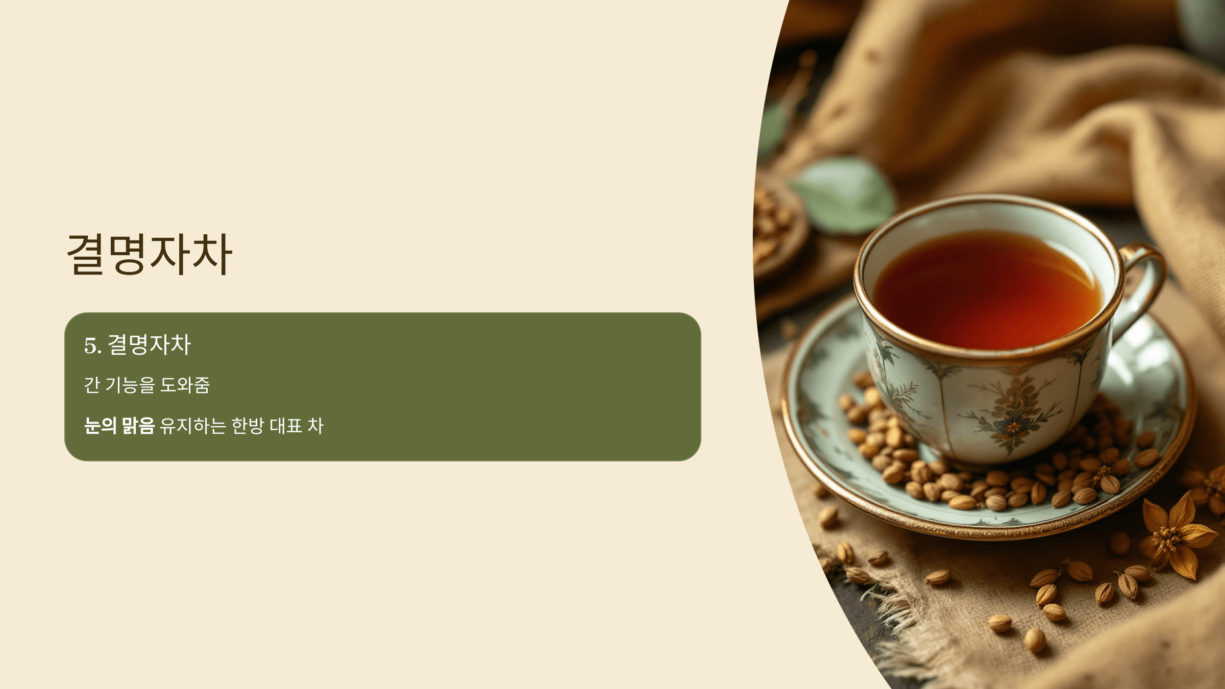 항산화 성분과 미네랄이 풍부한 차는 자연스럽게 눈을 맑게 해주는 데 도움이 돼요.