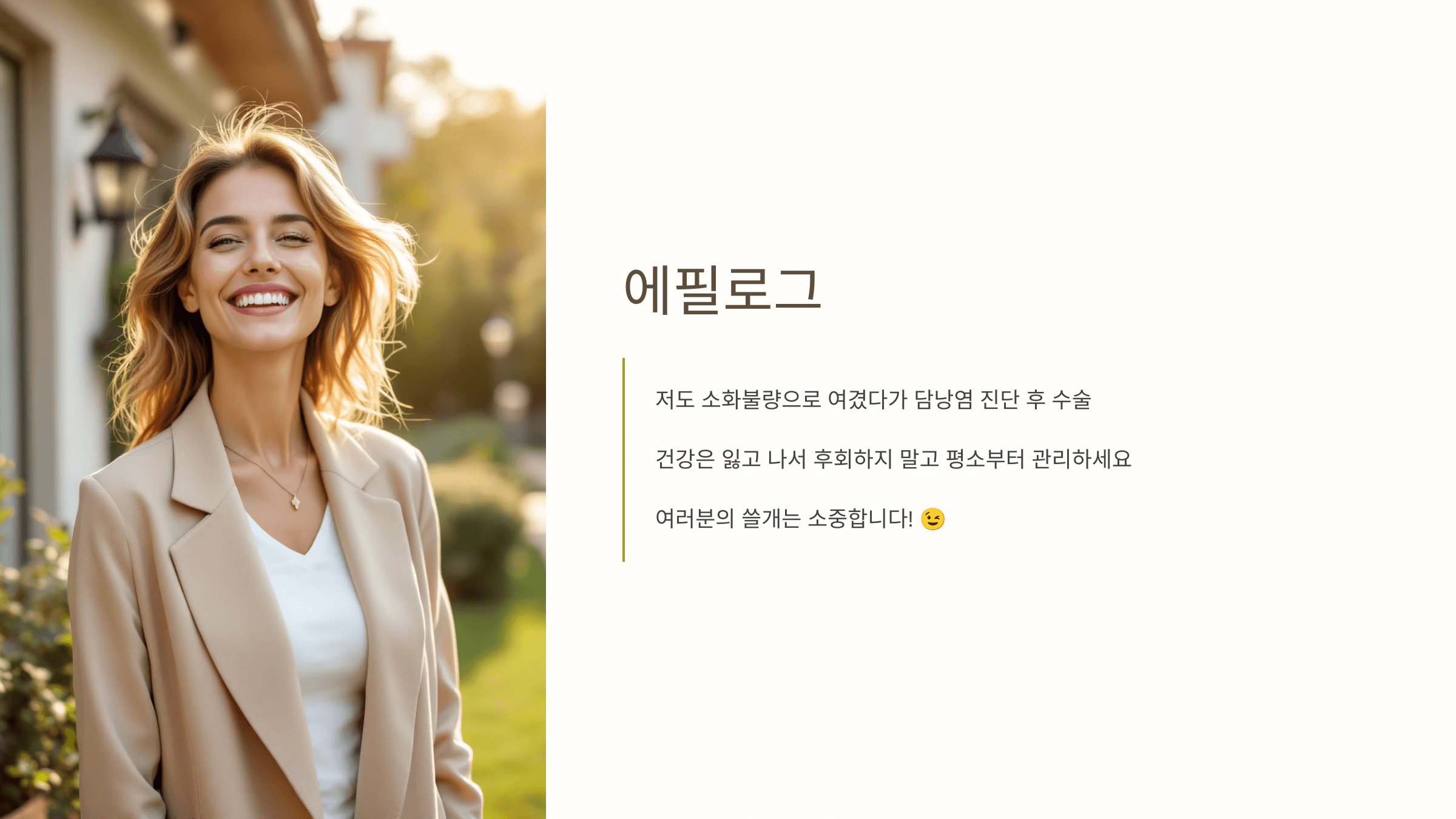 저도 한동안 잦은 복통을 단순 소화불량으로 여겼다가 결국 담낭염 진단을 받고 수술까지 하게 되었어요.