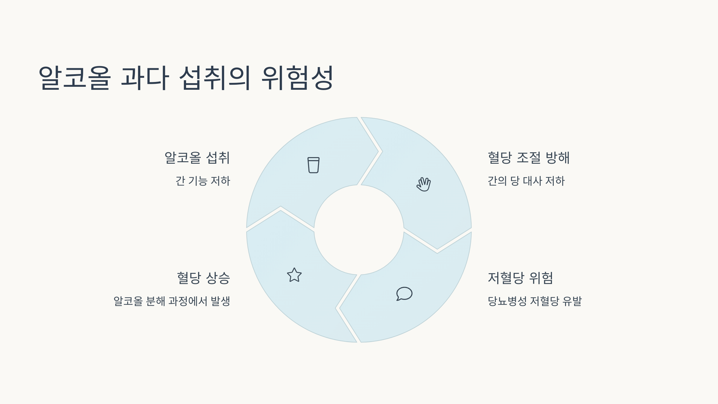 저혈당 또는 고혈당을 유발할 수 있어요. 특히 공복 음주는 위험합니다.