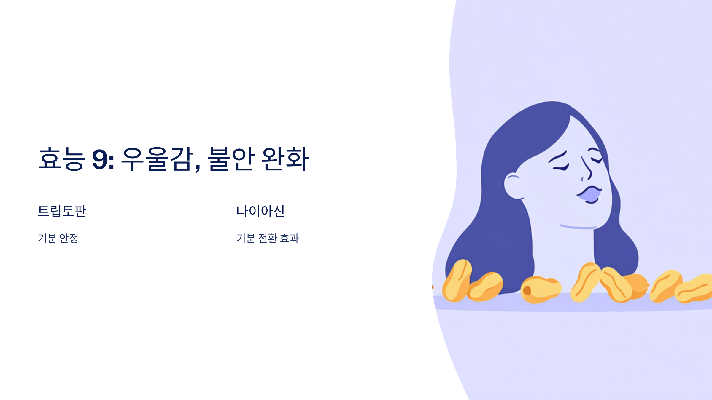 땅콩 속 트립토판과 나이아신은 세로토닌 분비를 돕고 기분을 안정시켜 땅콩 섭취가 스트레스 완화에 효과적입니다.