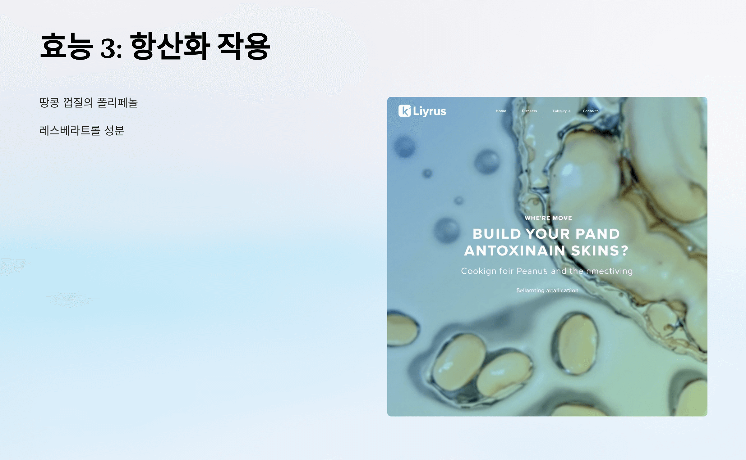 땅콩 껍질과 씨앗 속 폴리페놀, 레스베라트롤, 비타민 E 등의 항산화 물질은 노화 방지와 세포 손상 억제, 땅콩이 항염 작용에도 도움을 줍니다.
