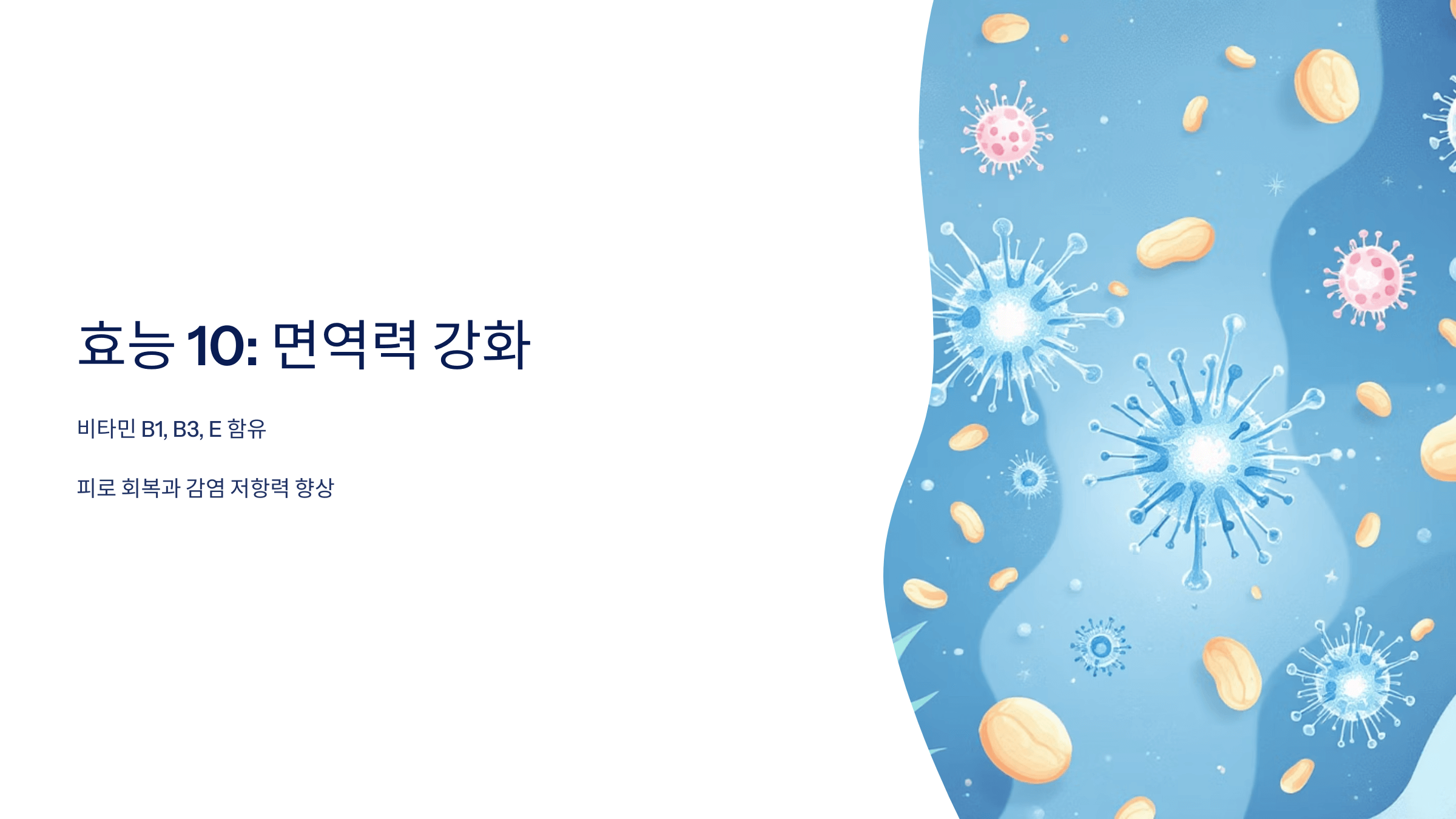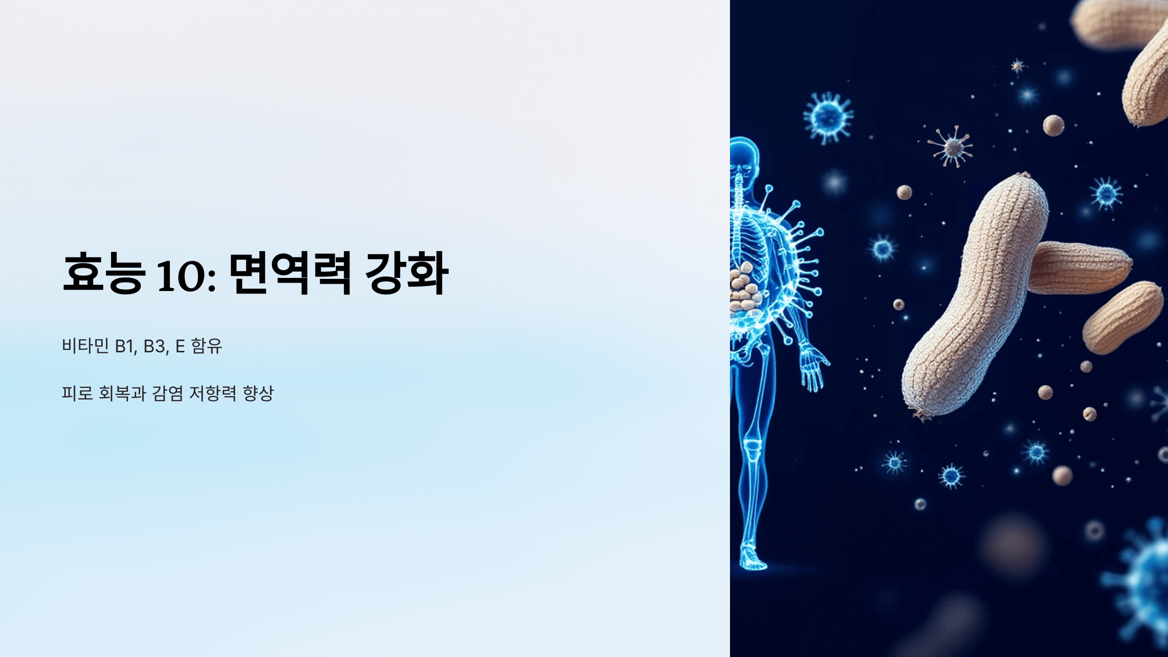 땅콩에 함유된 비타민 B1, B3, E는 피로 회복과 면역 강화를 도우며, 땅콩은 겨울철 감기 예방에도 긍정적 영향을 줍니다.