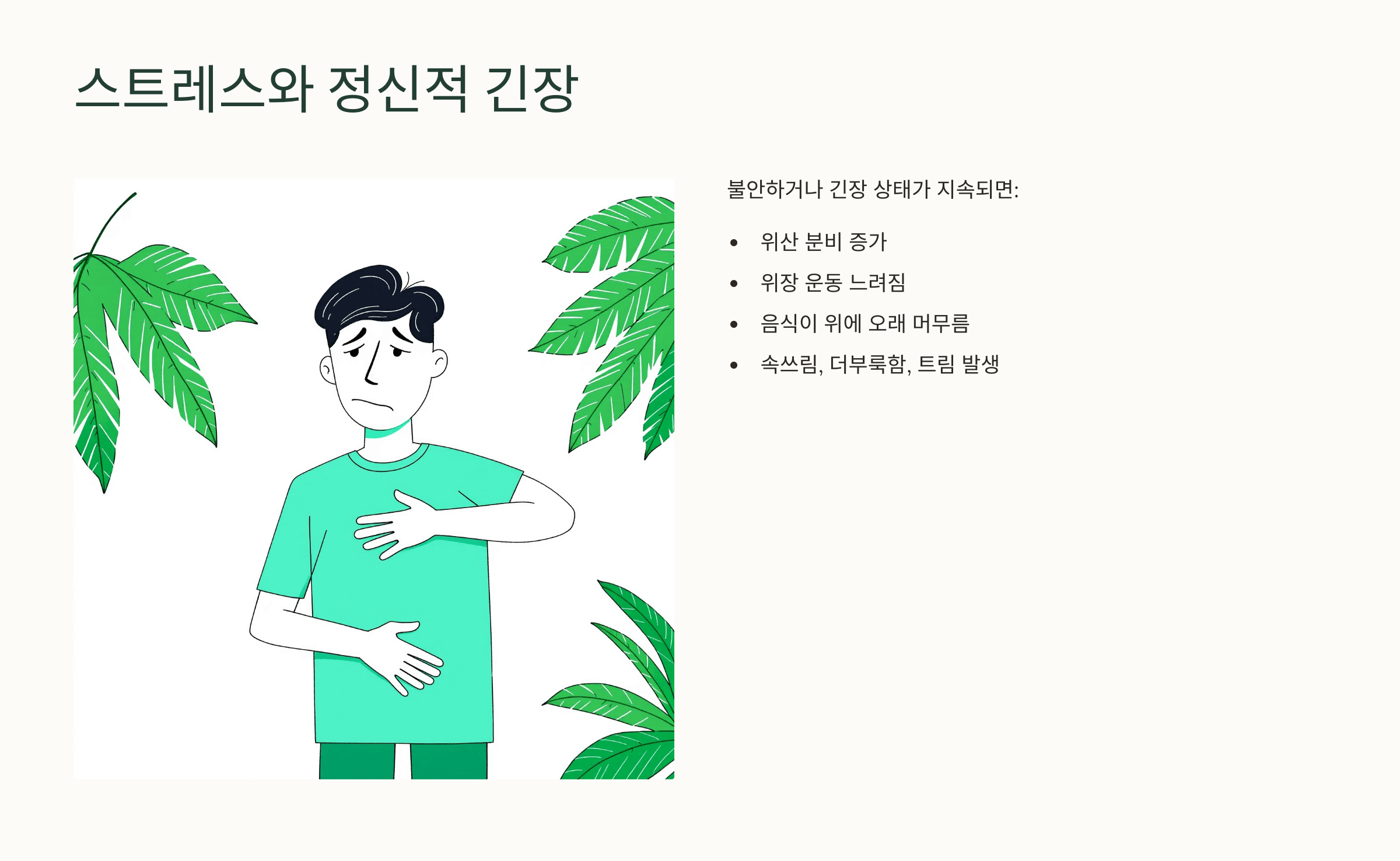 스트레스는 위장 기능에 큰 영향을 미쳐요.