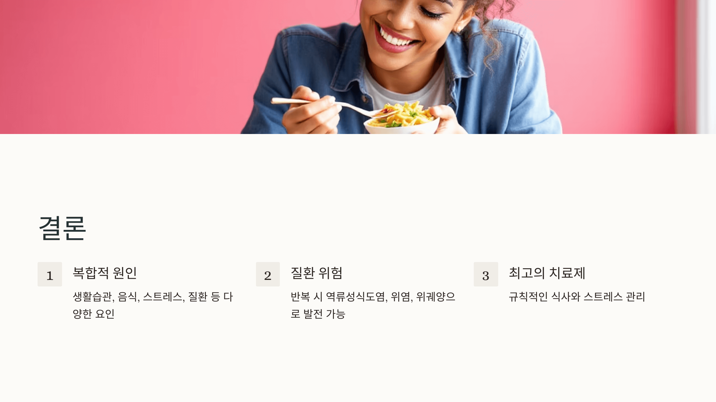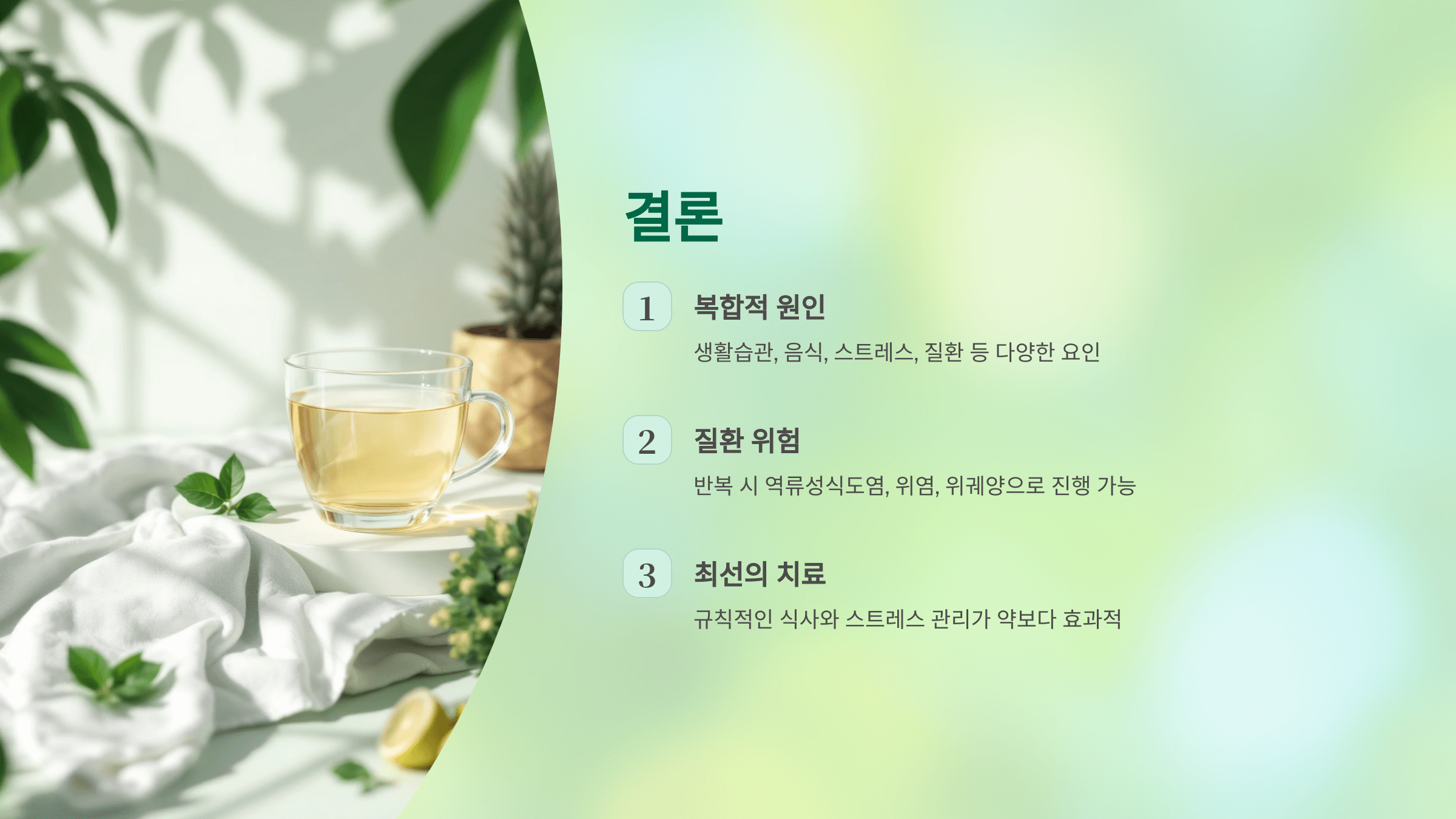 따라서 단순 제산제 복용보다는 원인에 맞춘 생활 습관 개선이 핵심이에요!