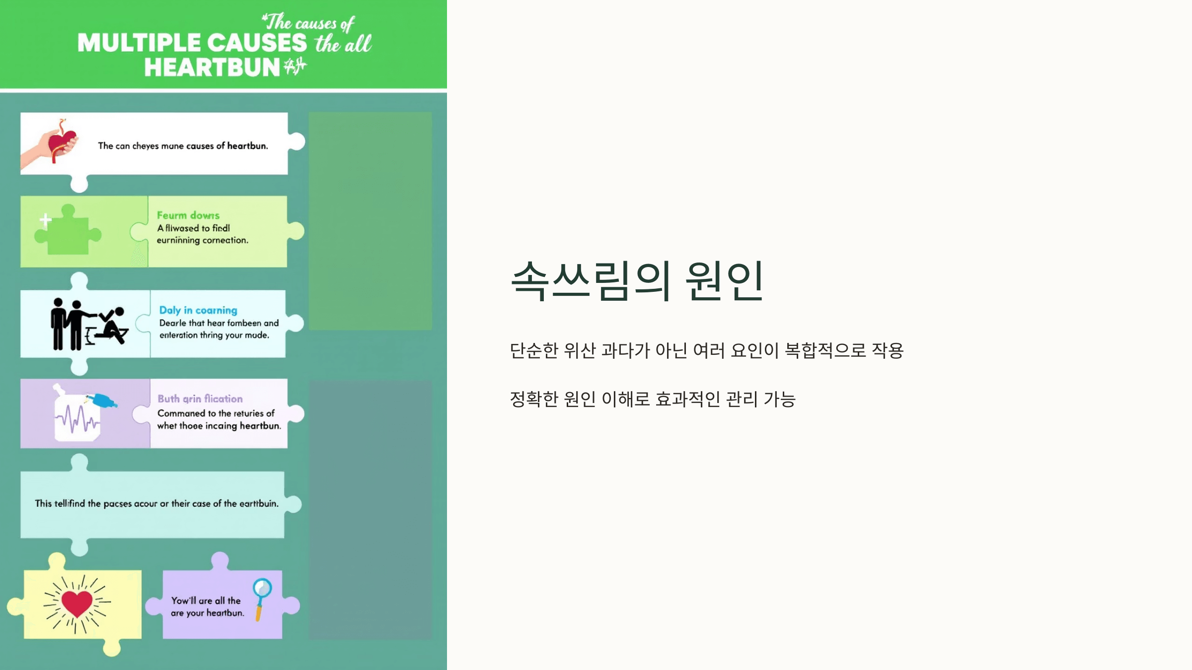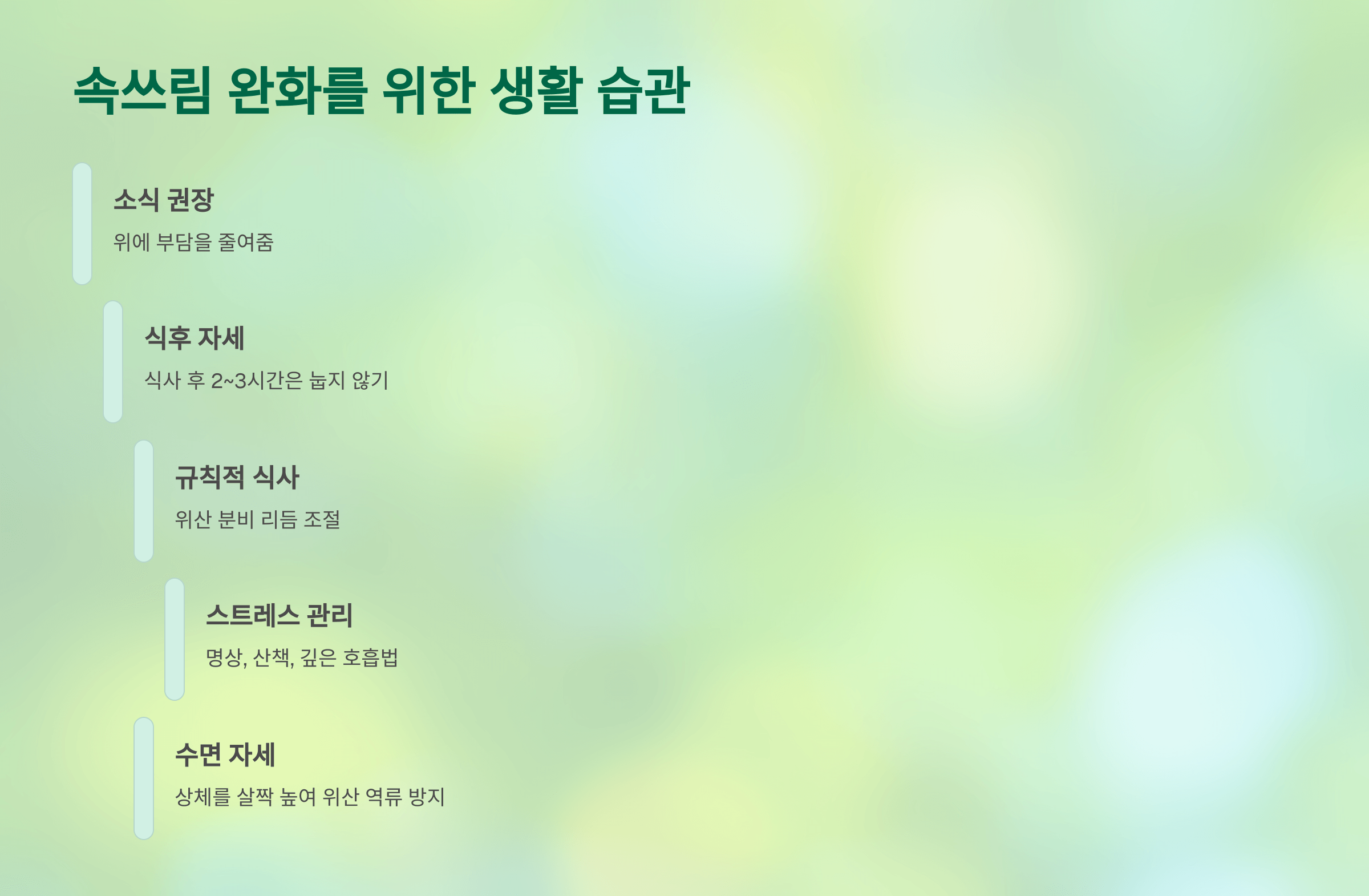 속쓰림은 단순한 위산 과다가 아니라, 여러 요인이 복합적으로 작용해 생기는 증상이에요.