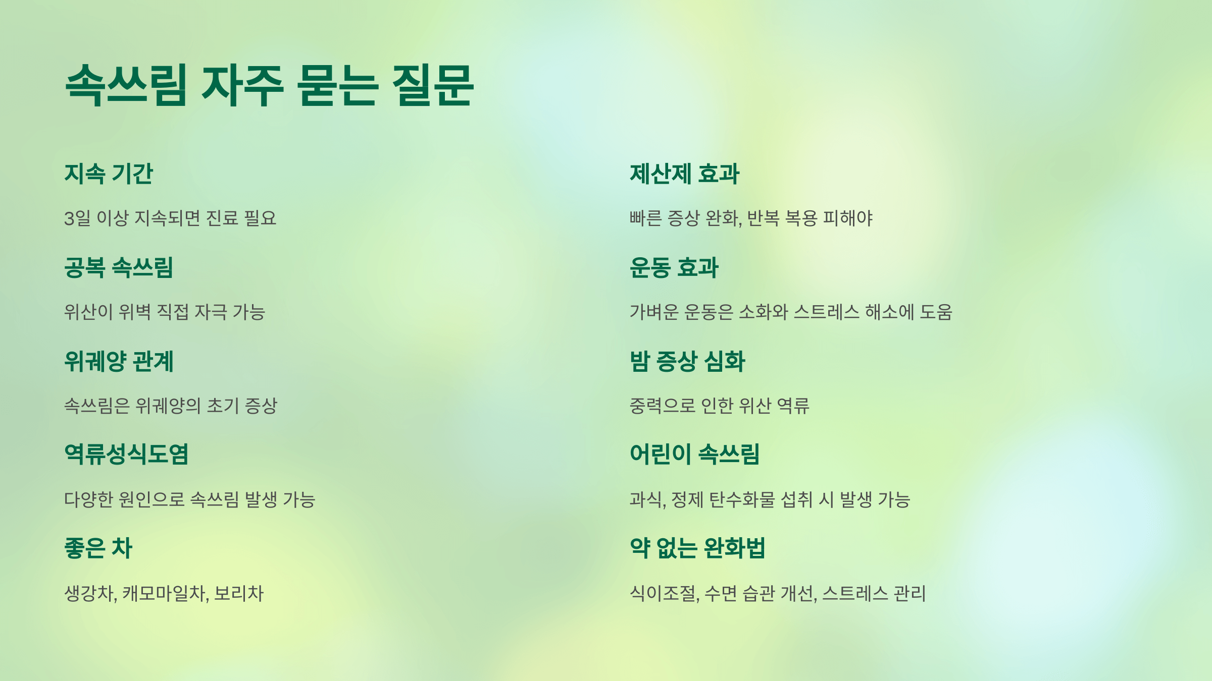 💬 속쓰림 자주 묻는 질문 (FAQ)