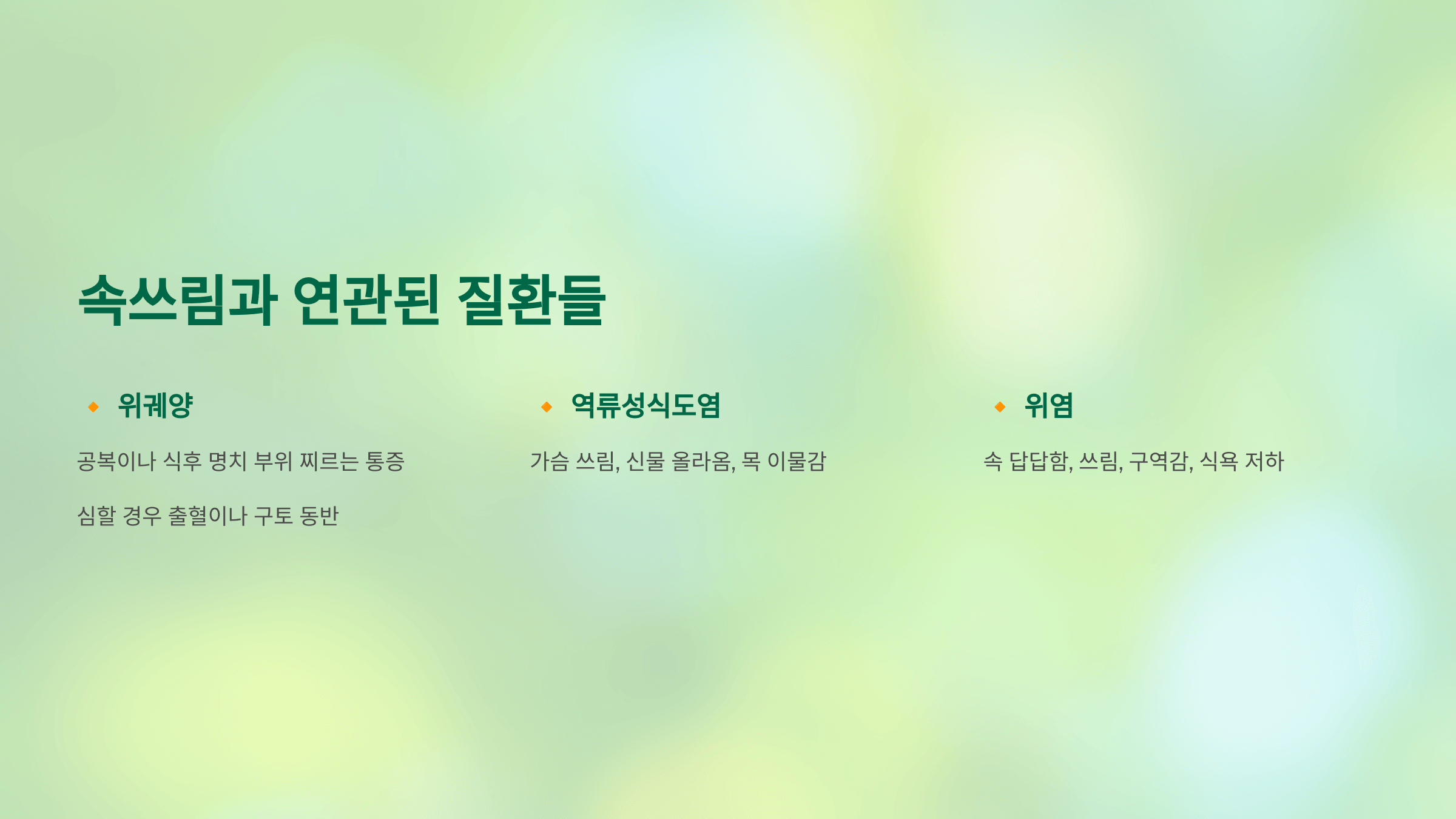 속쓰림이 자주 나타난다면 다음과 같은 질환의 징후일 수 있어요: