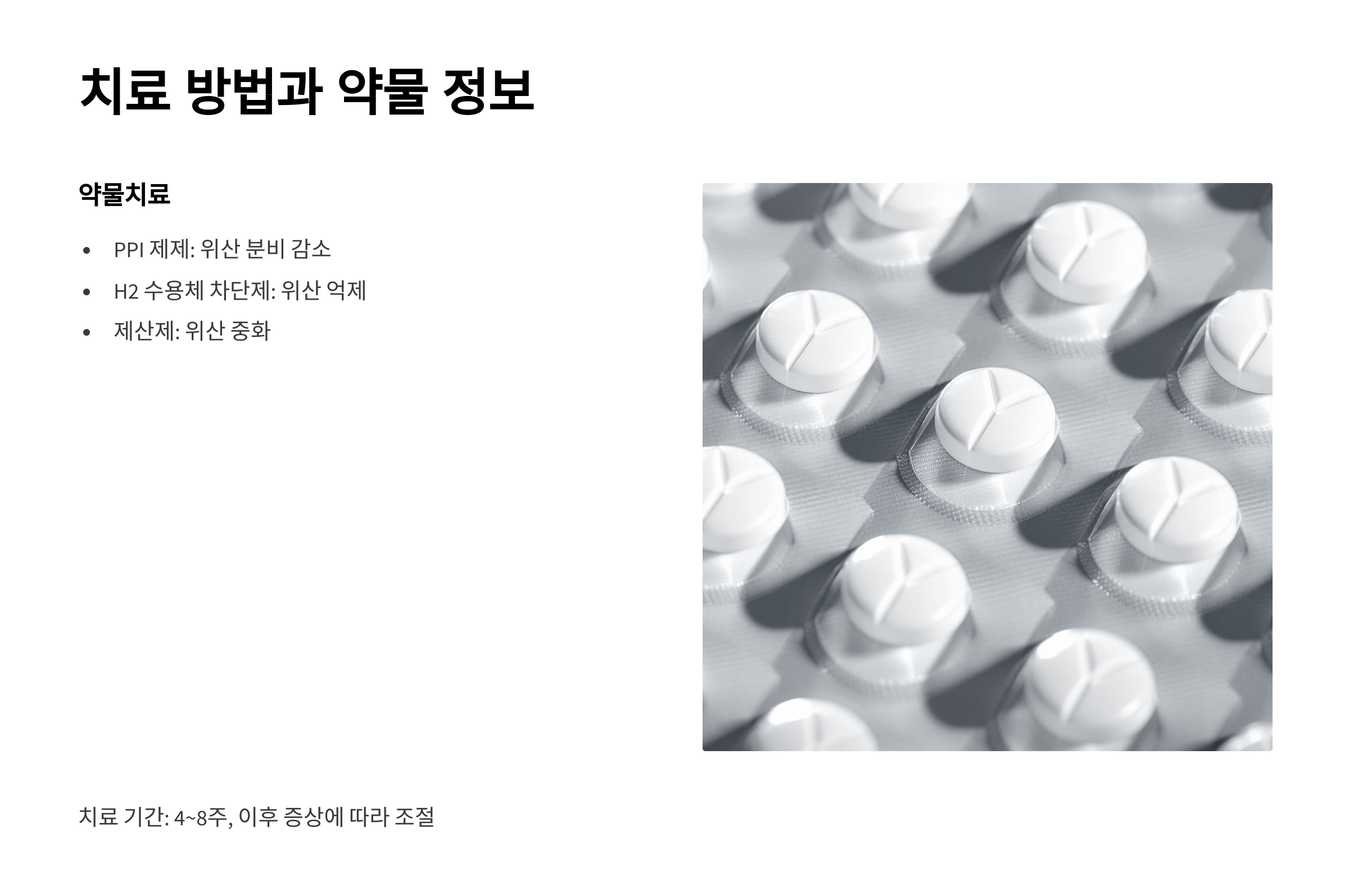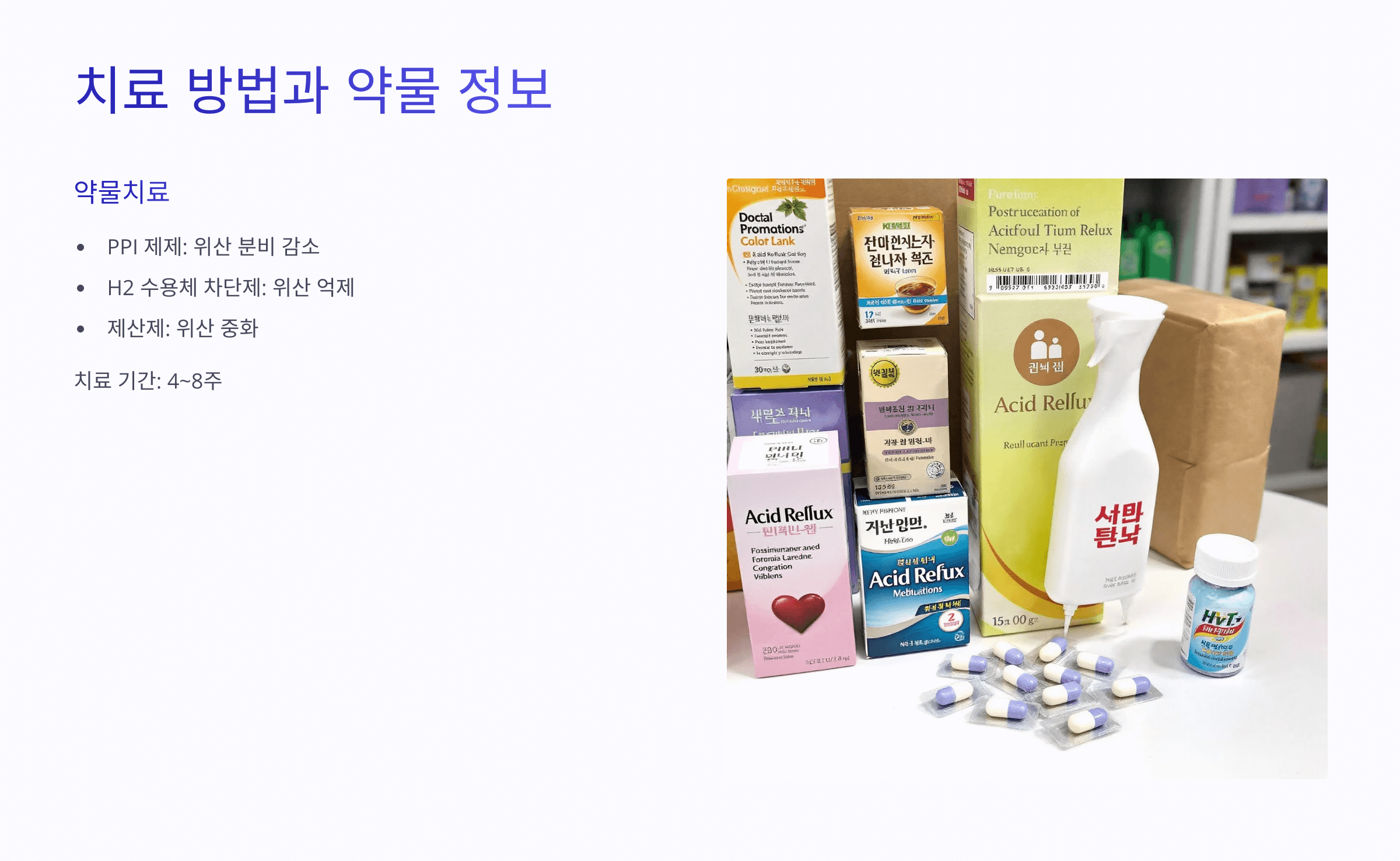 - 제산제: 위산을 중화해 빠르게 증상을 완화합니다.