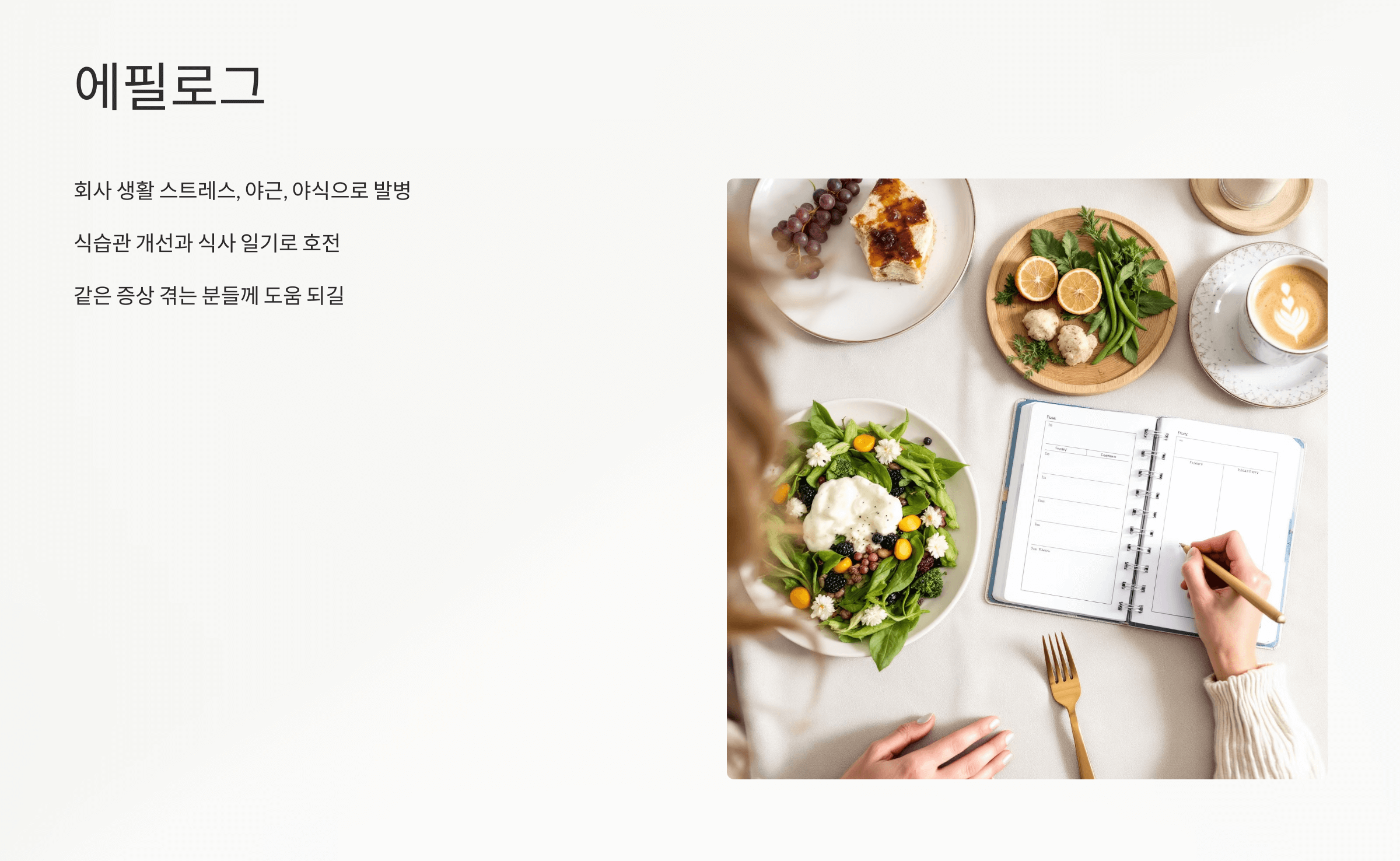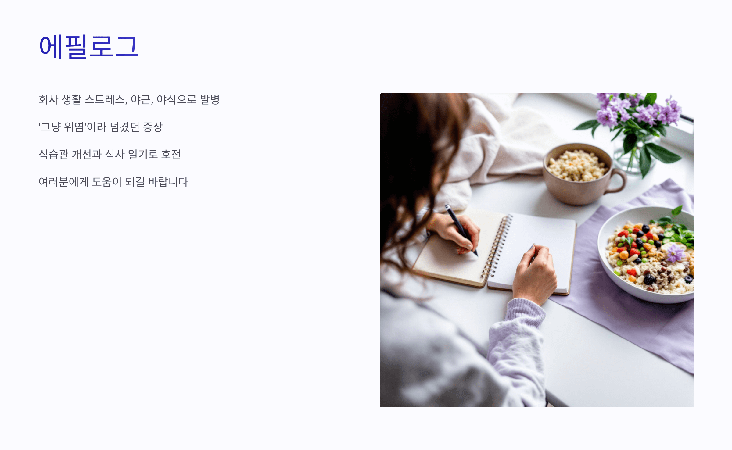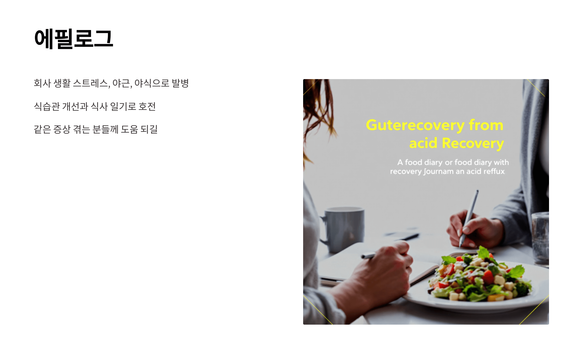 지금은 식습관을 바꾸고, 식사 일기를 쓰면서 많이 나아졌답니다.