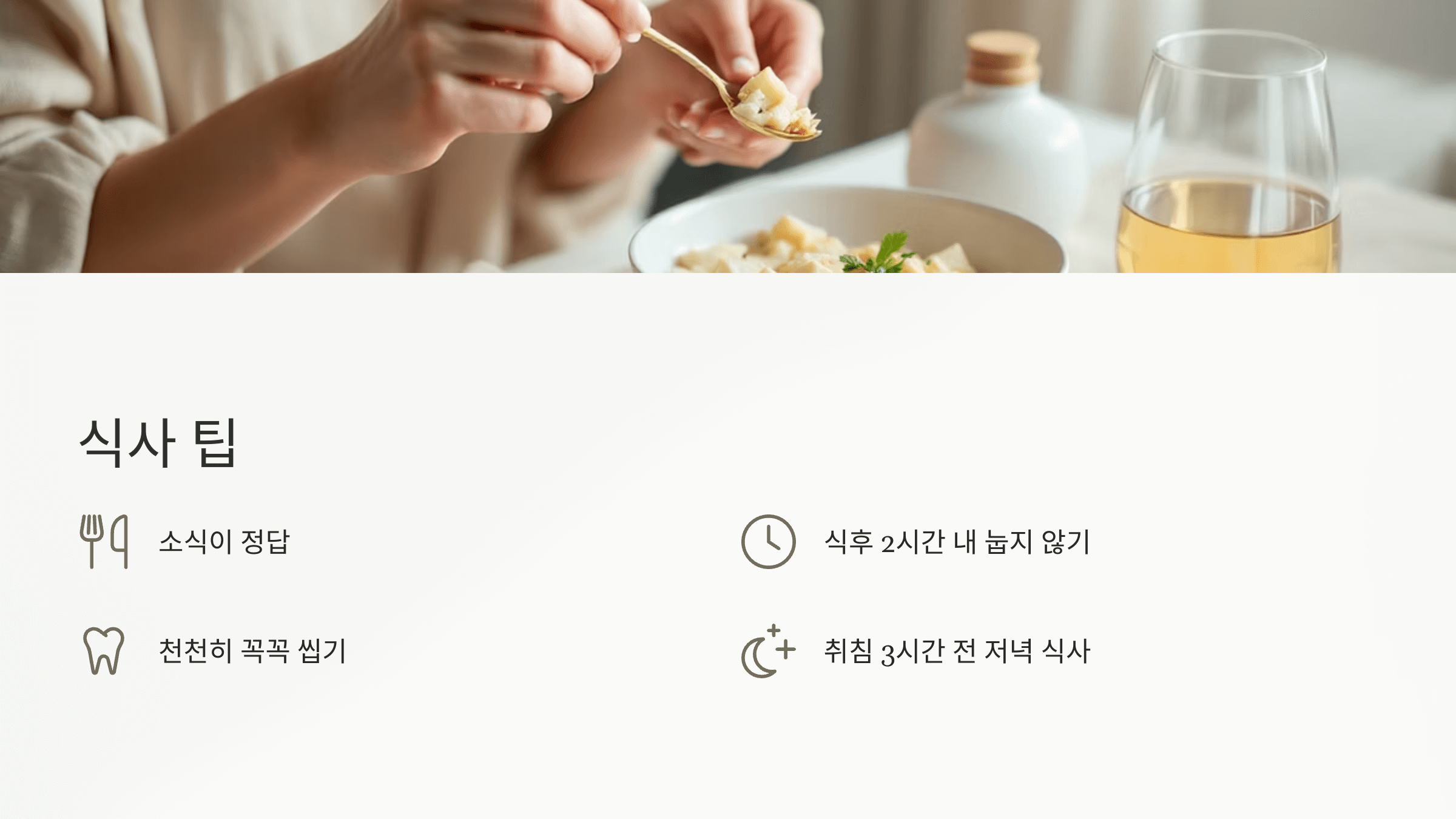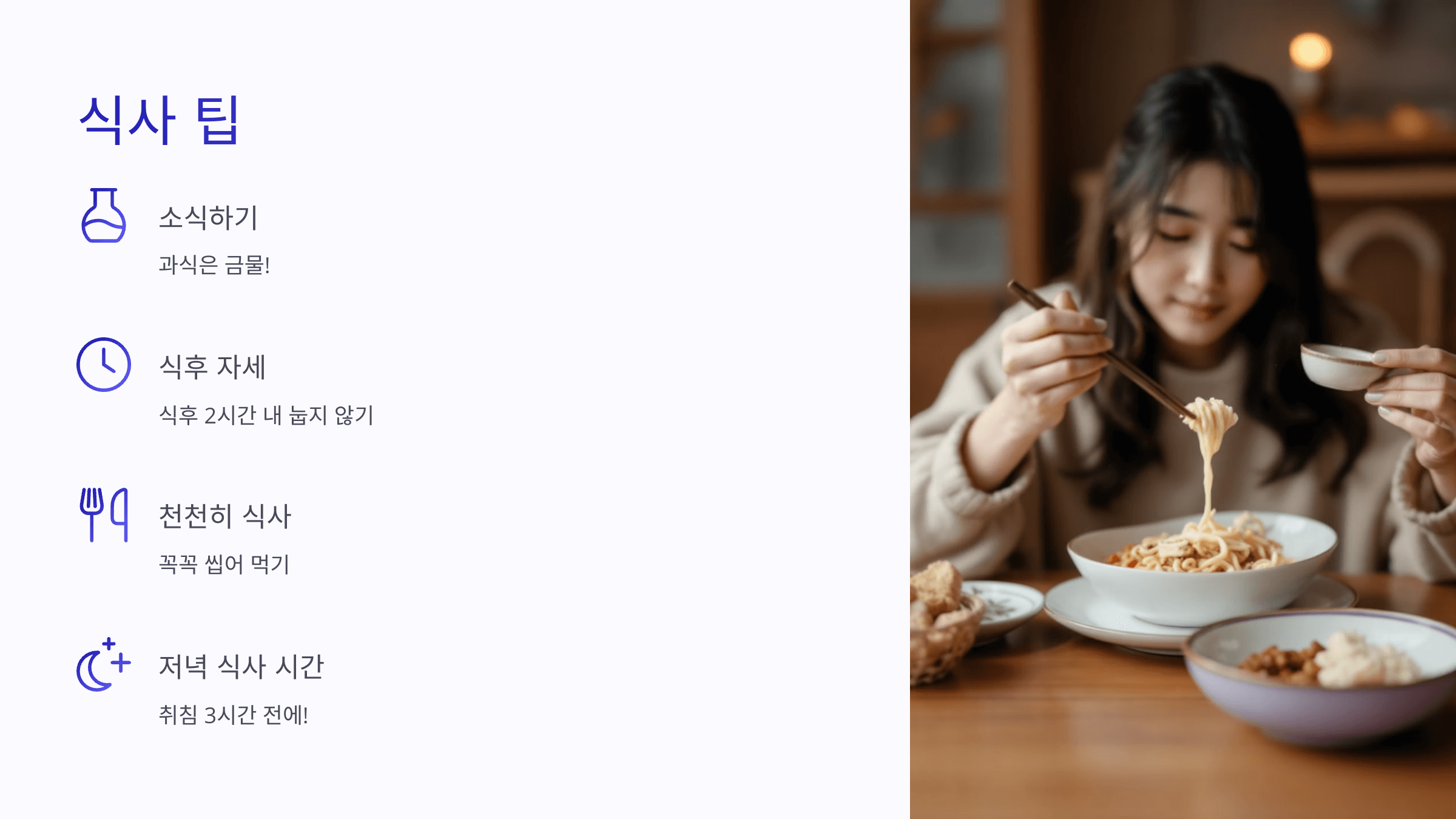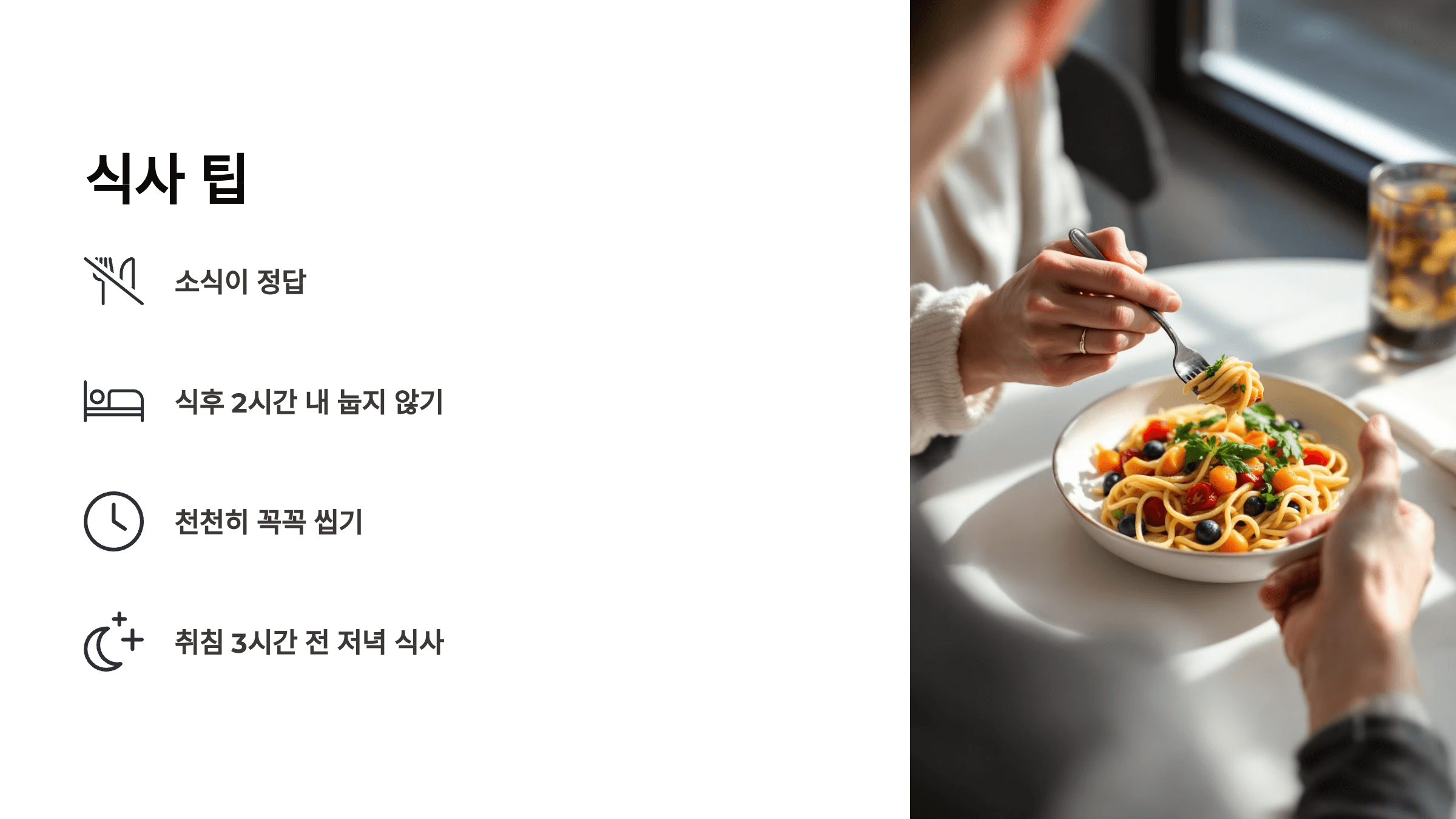 - 저녁은 최소 취침 3시간 전에!