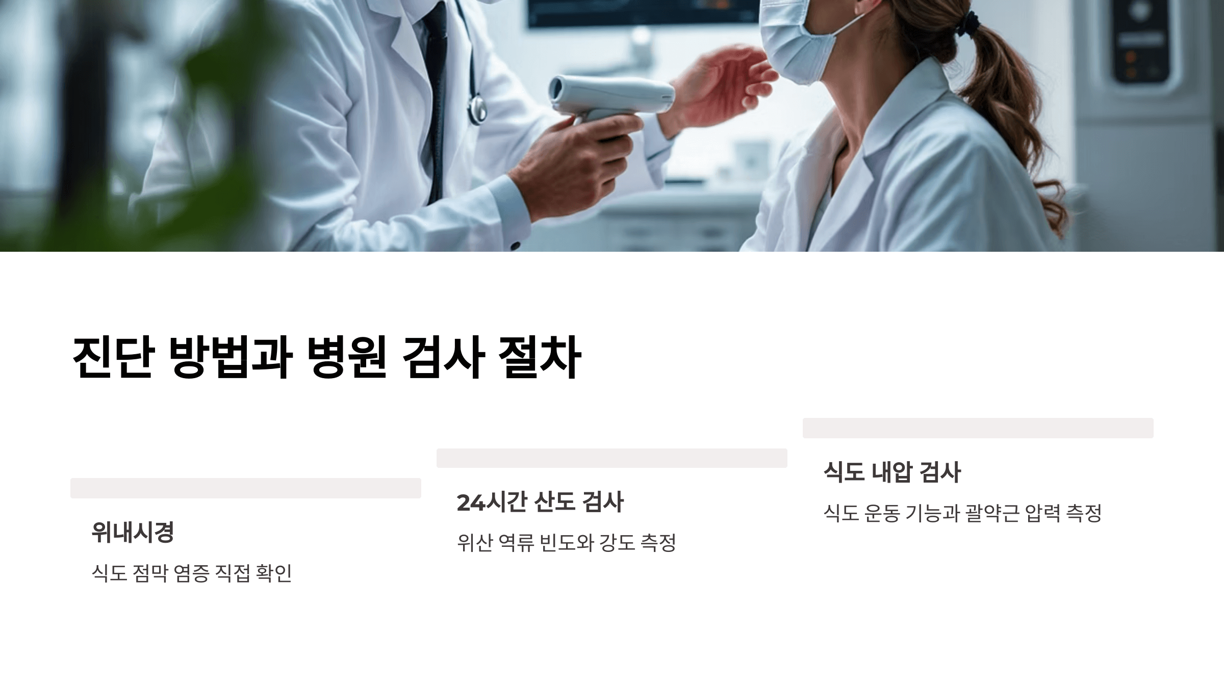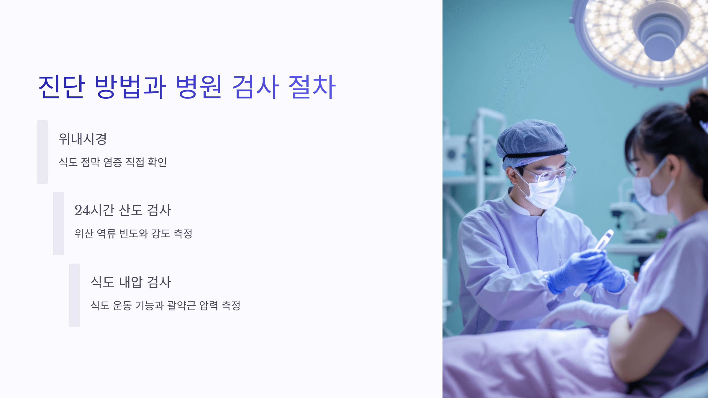 식도 점막의 염증 상태를 직접 확인합니다. 가장 정확한 진단법이에요. - 24시간 산도 검사