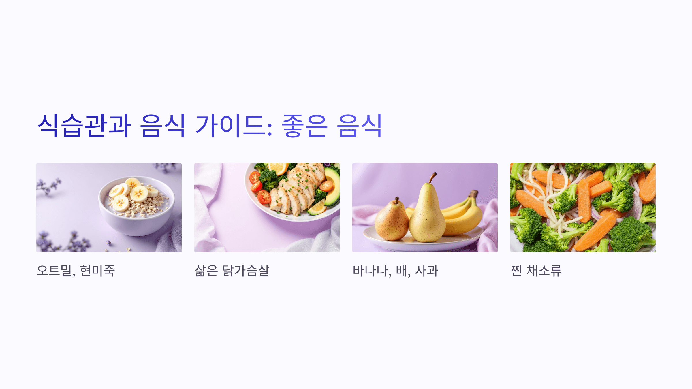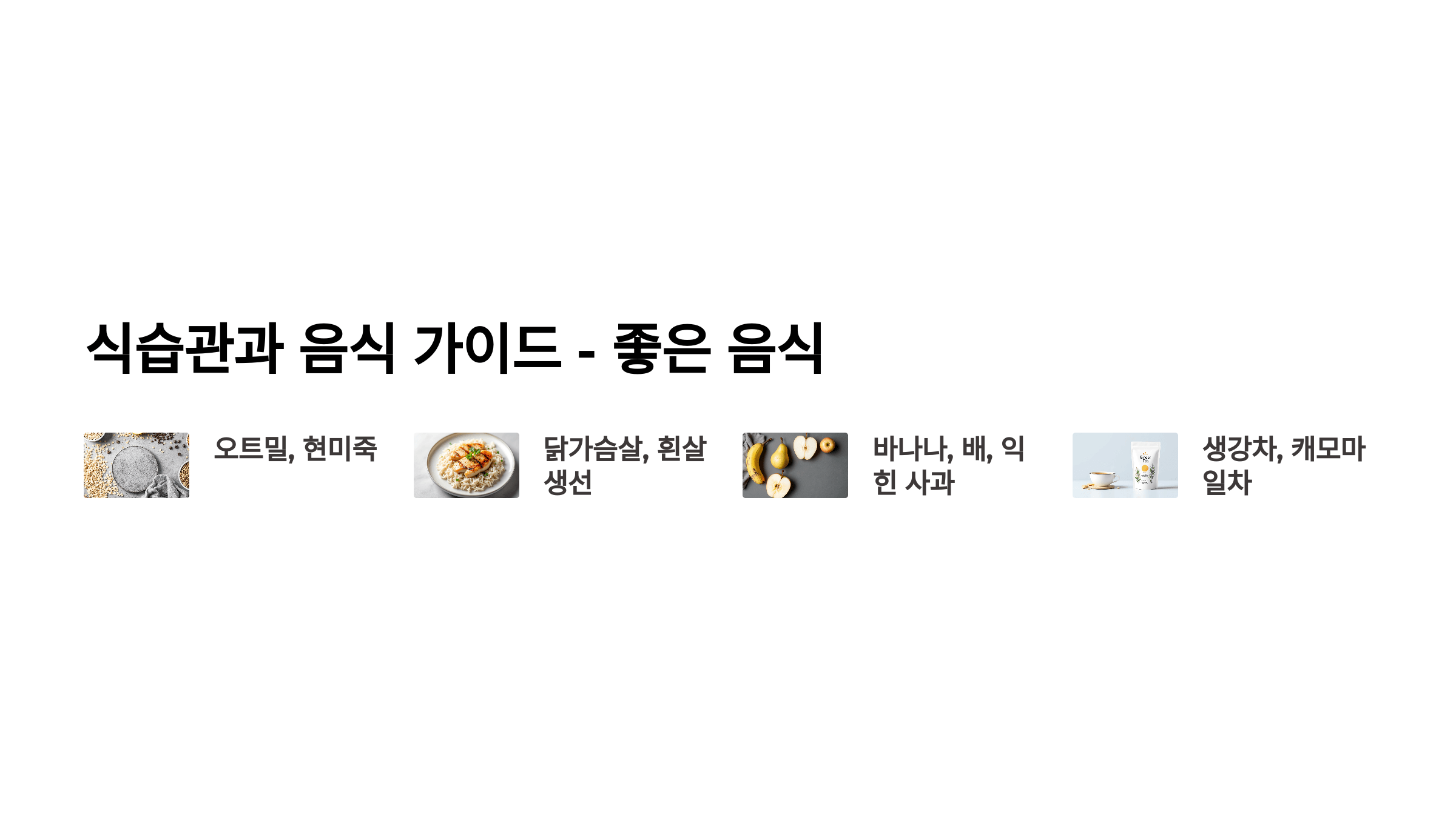 - 오트밀, 현미죽, 삶은 고구마, 찐 감자