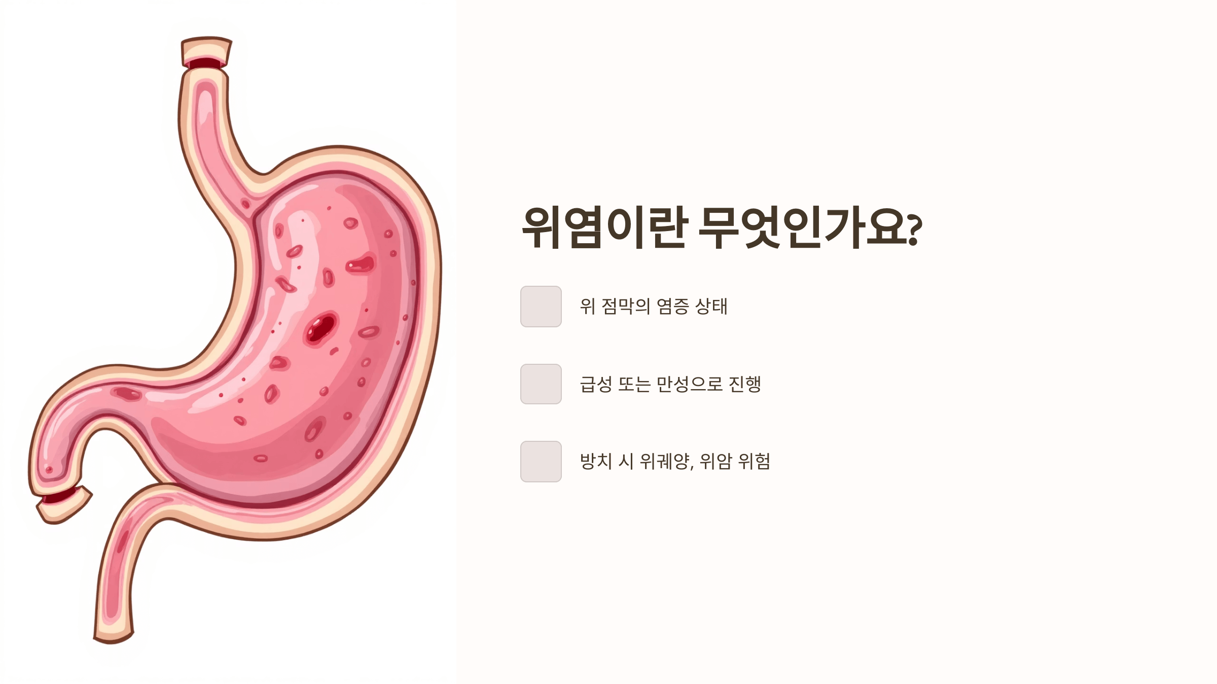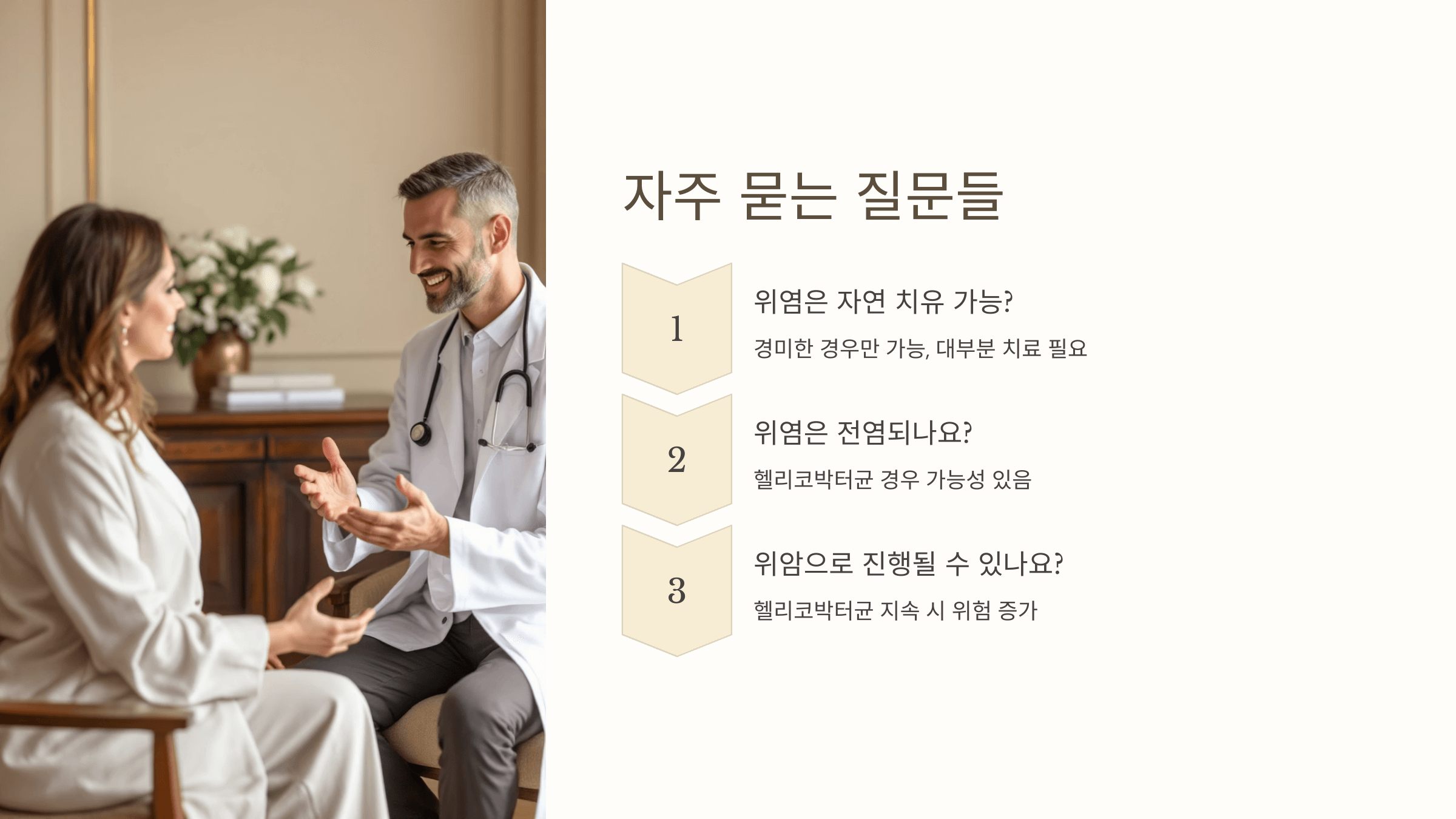 가볍게 보면 안 되는 질환으로, 방치하면 위궤양이나 위암으로 진행될 수 있기 때문에 조기 관리가 중요합니다.
