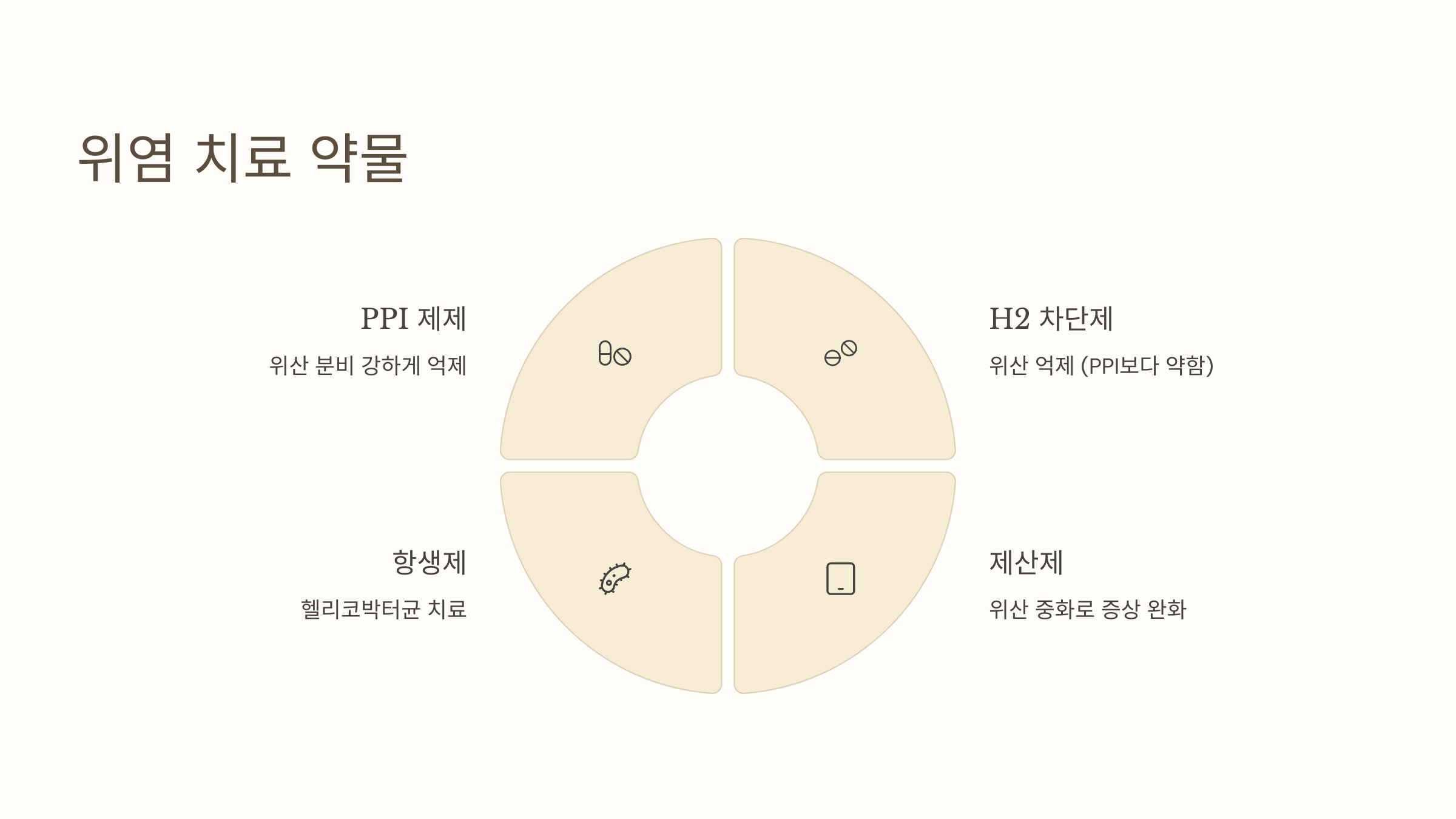- 제산제: 위산을 중화시켜 증상 완화