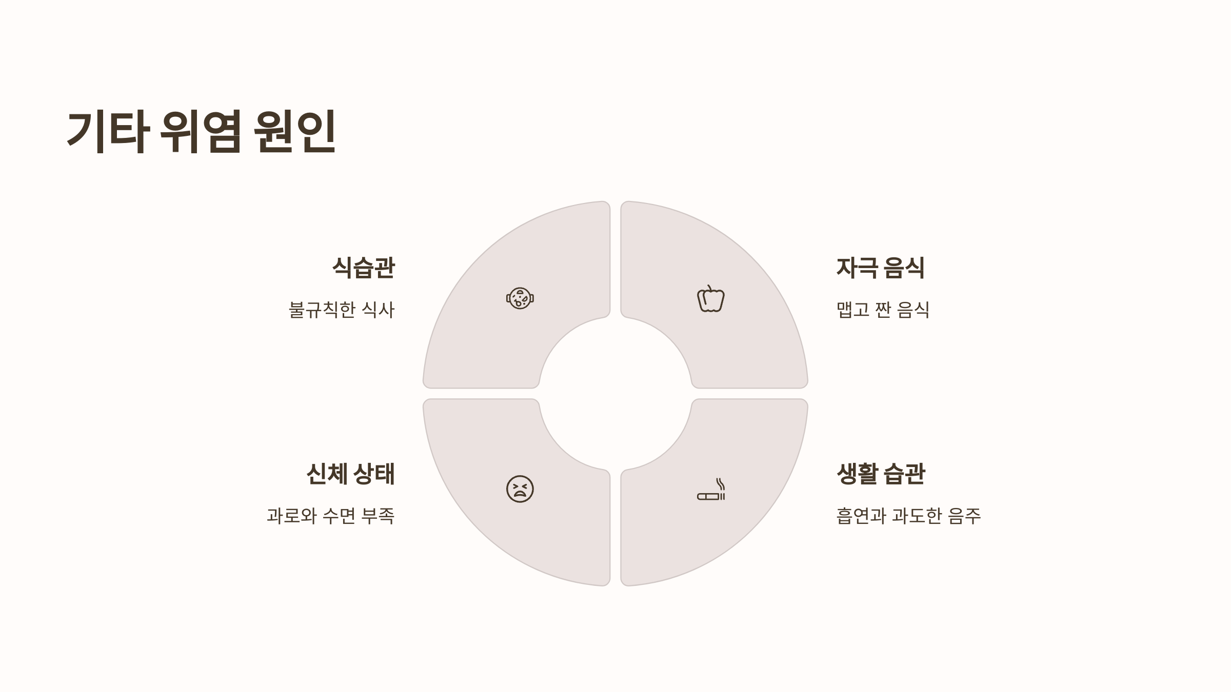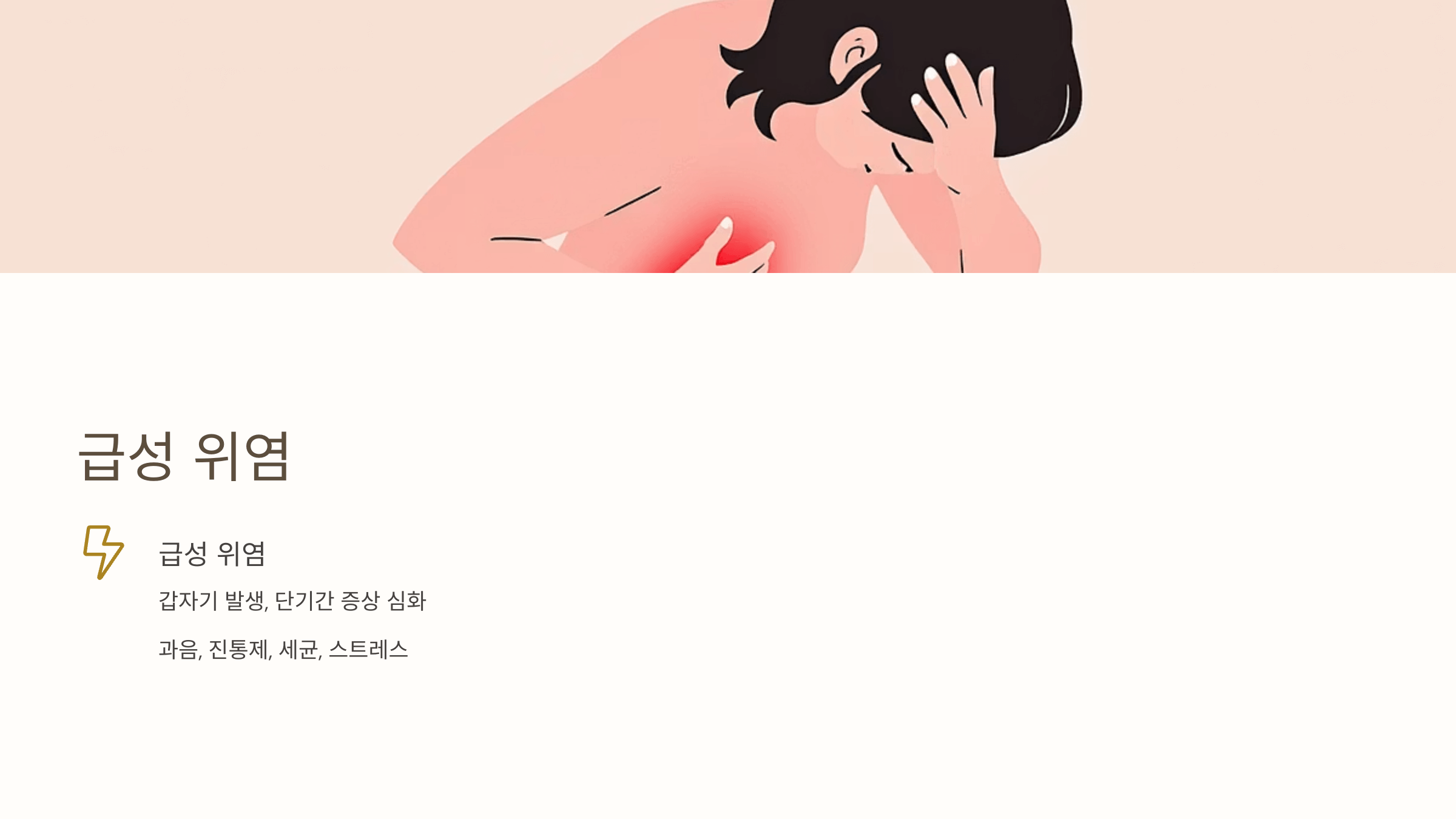 - 주요 원인: 과음, 진통제 복용, 세균 감염, 급성 스트레스