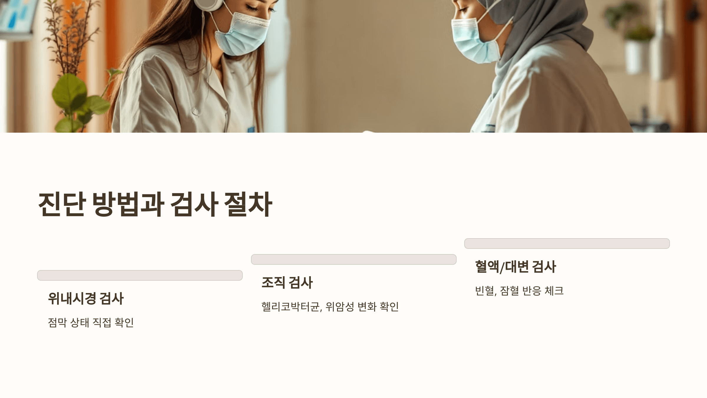 - 아침 공복 통증, 식후 불쾌감이 수일 이상 지속된다면 내시경 검사를 고려해야 합니다.