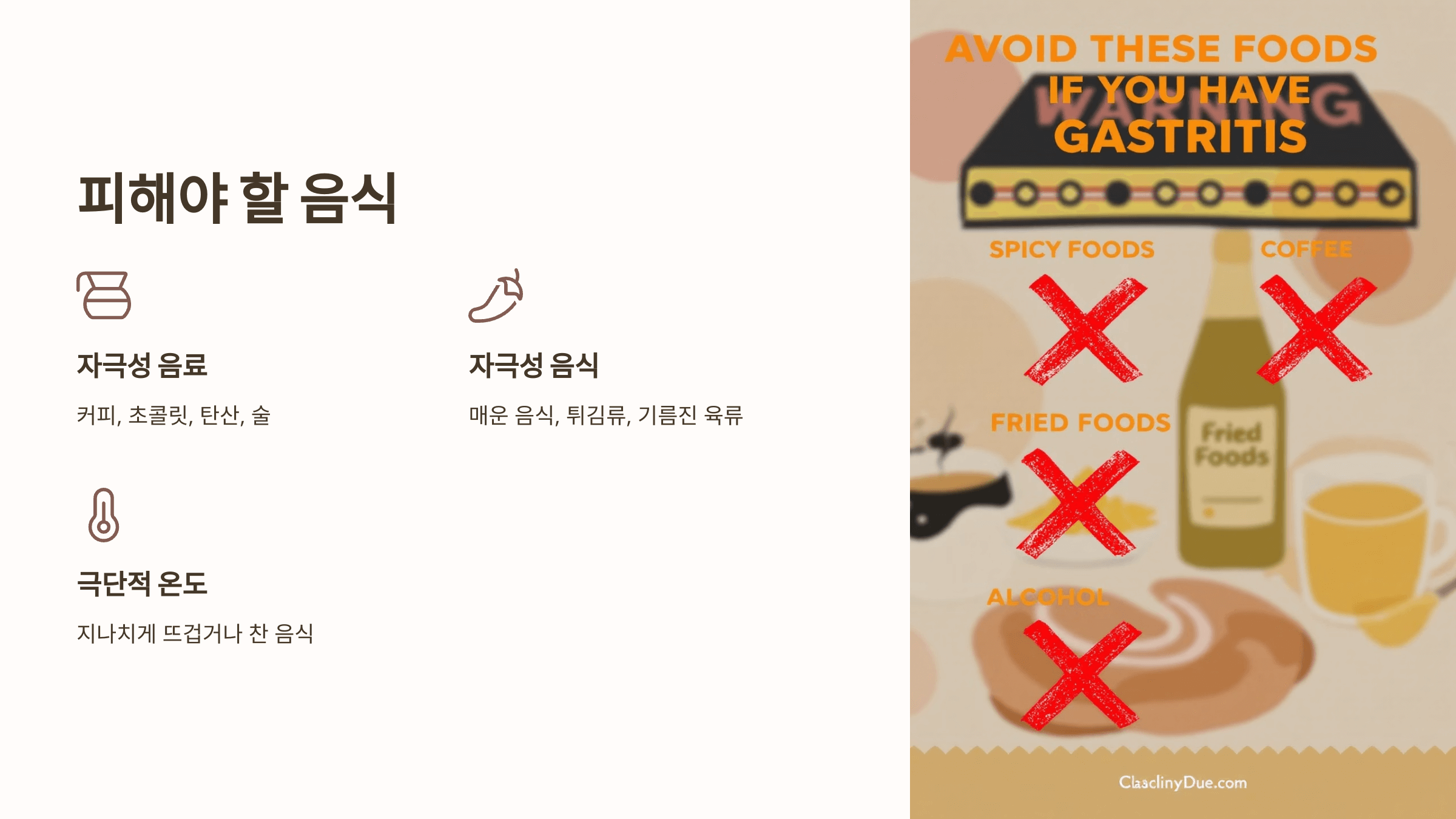 - 자극적인 음식(맵고 짠 음식 등)