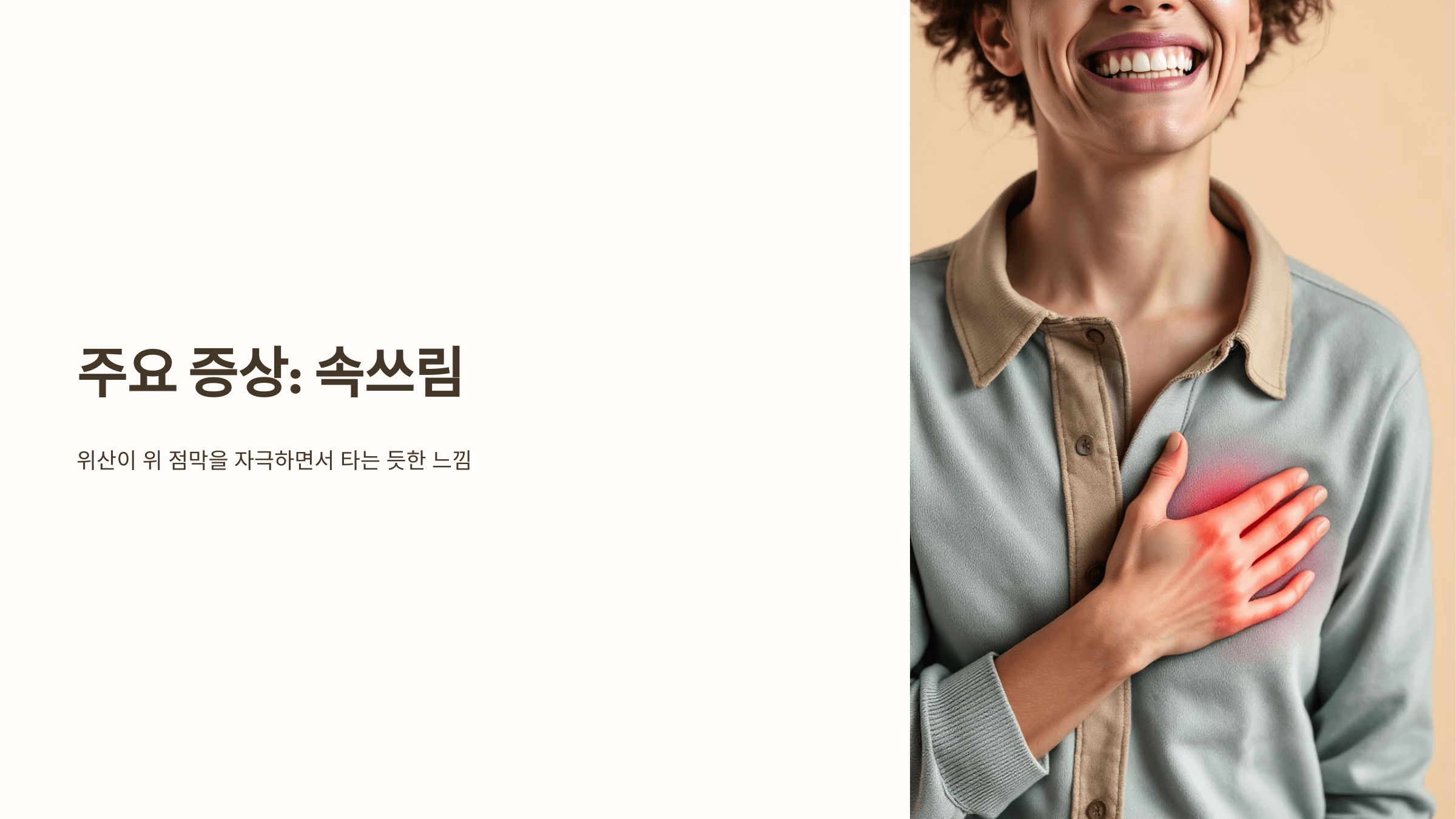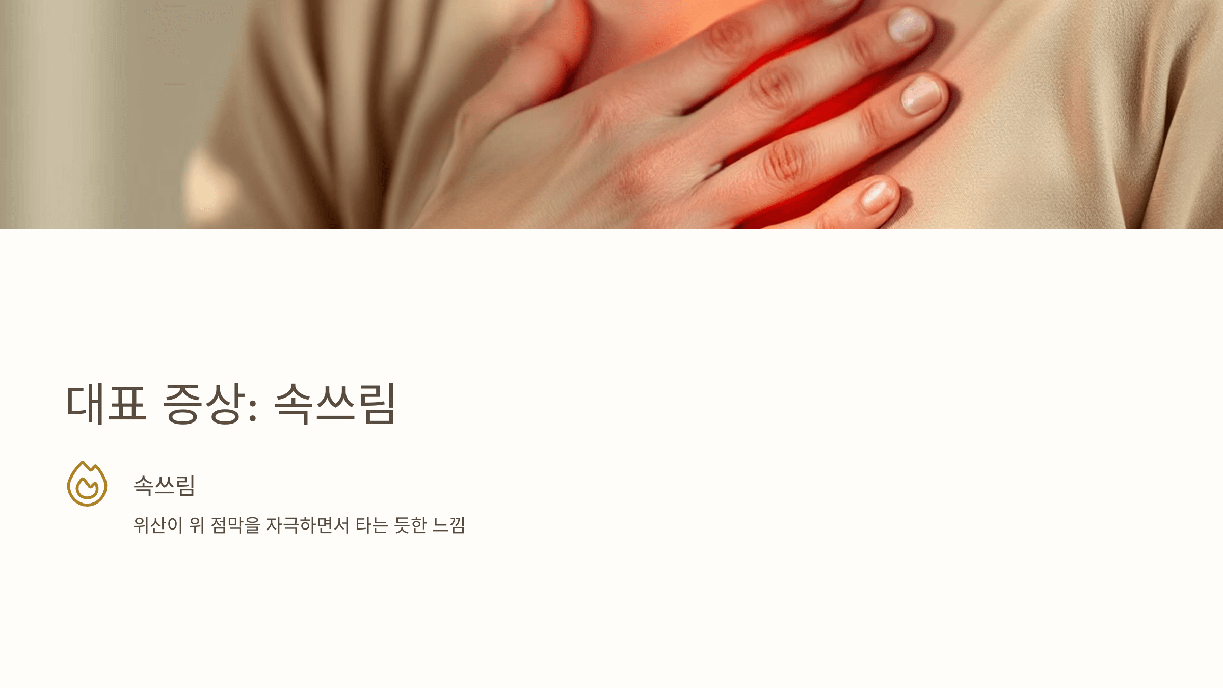 증상은 위산 과다, 감염, 약물, 스트레스 등 다양한 원인에 의해 나타납니다.