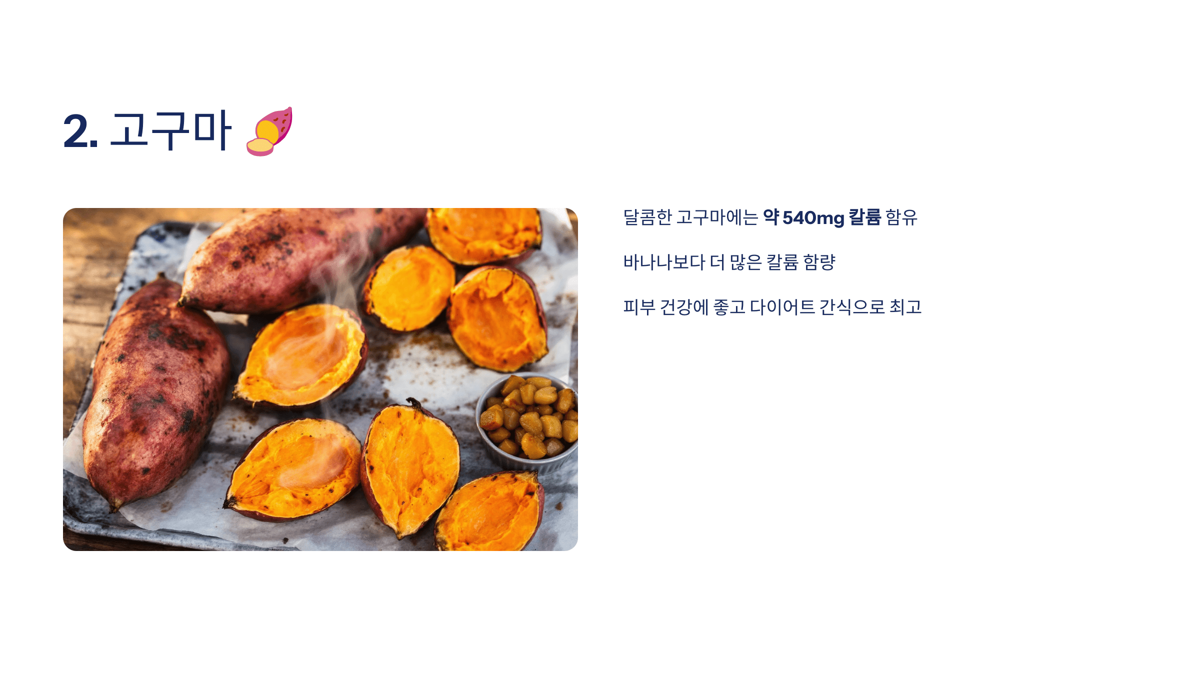 달콤한 고구마엔 바나나보다 더 많은 약 540mg 칼륨이 들어 있어요.