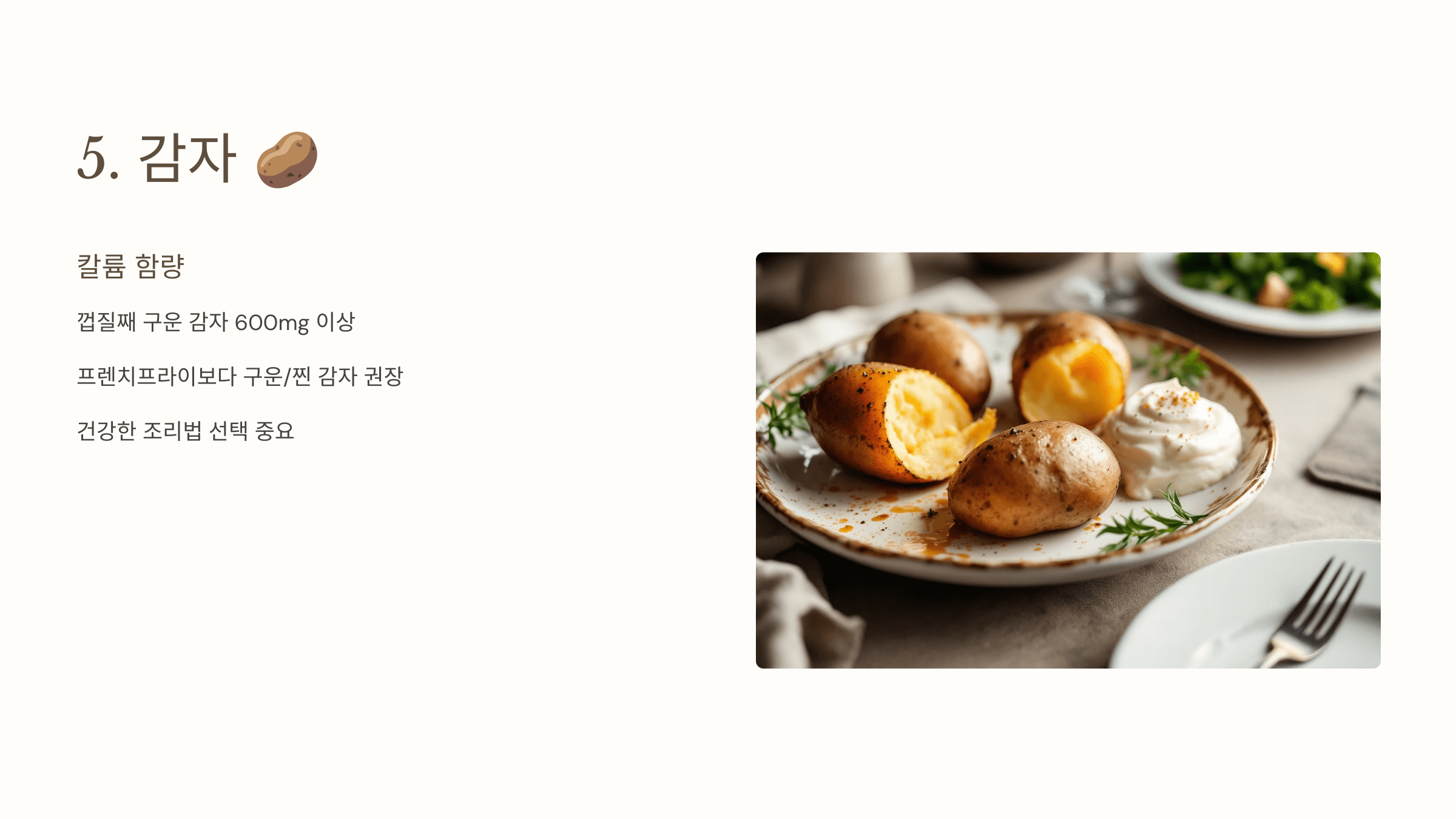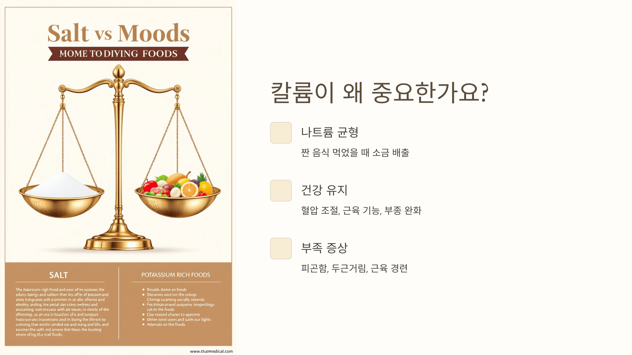 반대로 칼륨이 과도하면 심장 문제까지 생길 수 있으니 ‘적절한 섭취’가 핵심이에요!