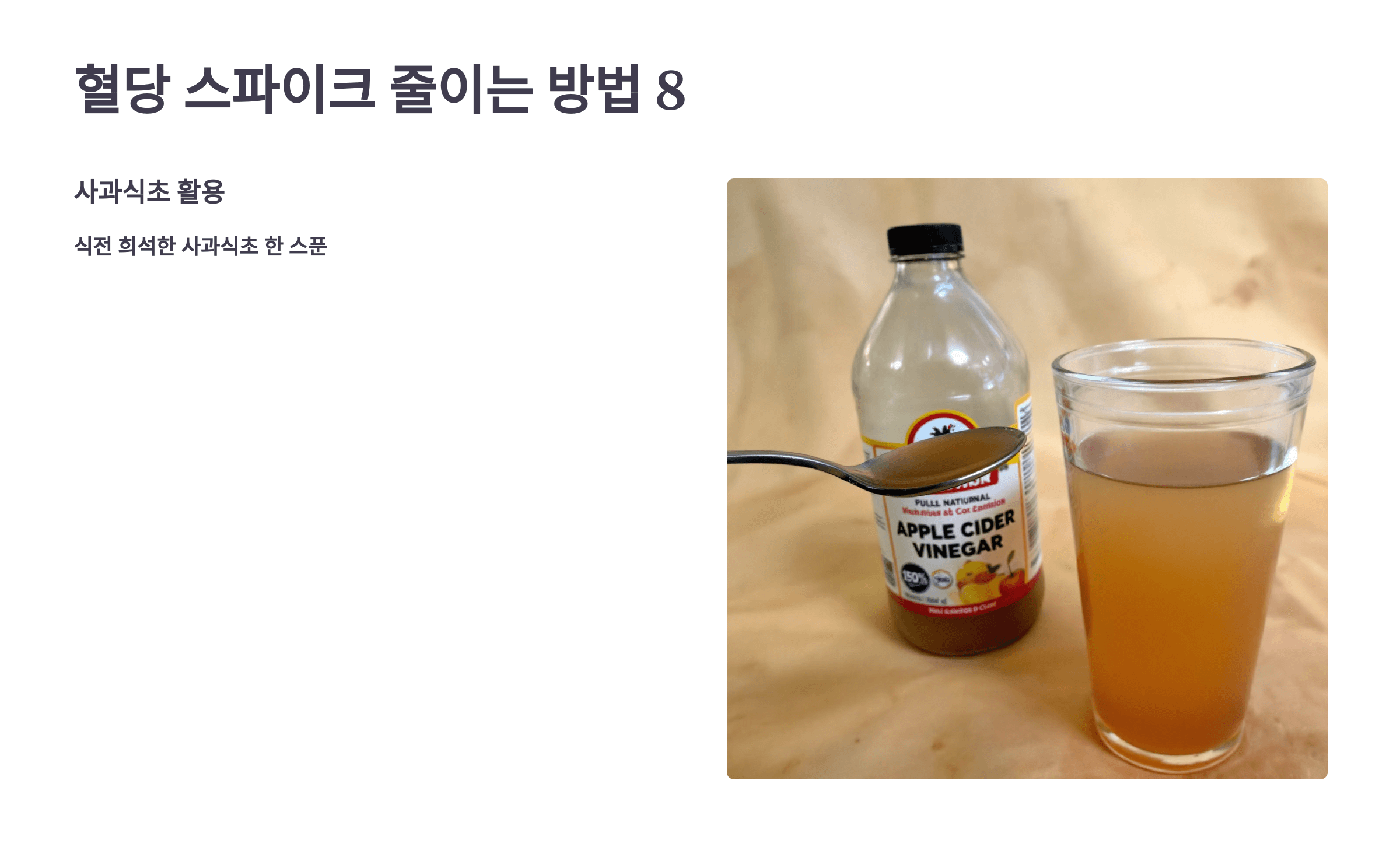 → 식후 30분~1시간 사이가 가장 흔해요. - 혈당 스파이크 예방 간식이 있나요?