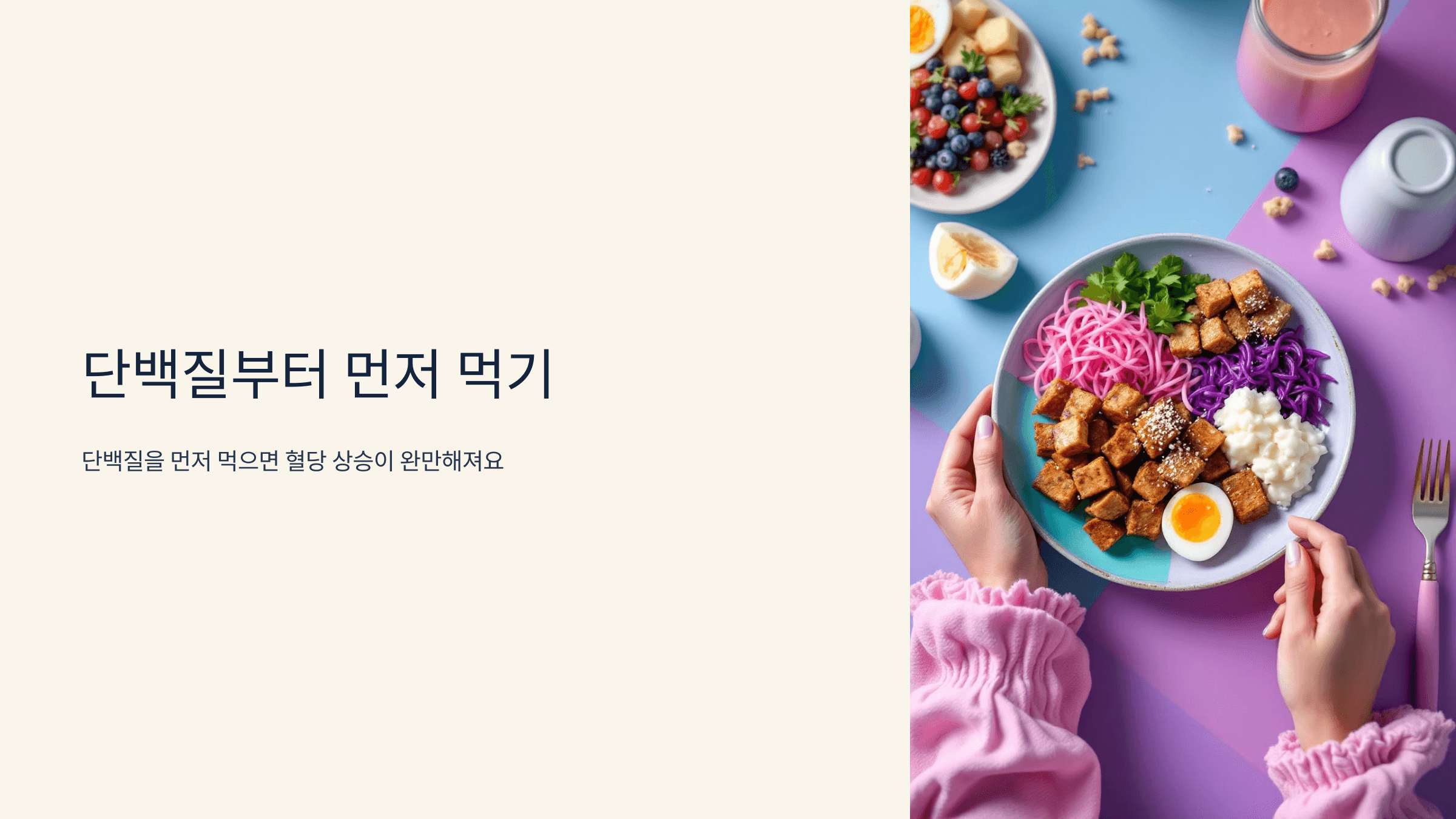 식사할 때 단백질을 먼저 먹으면 혈당 상승이 완만해져요.