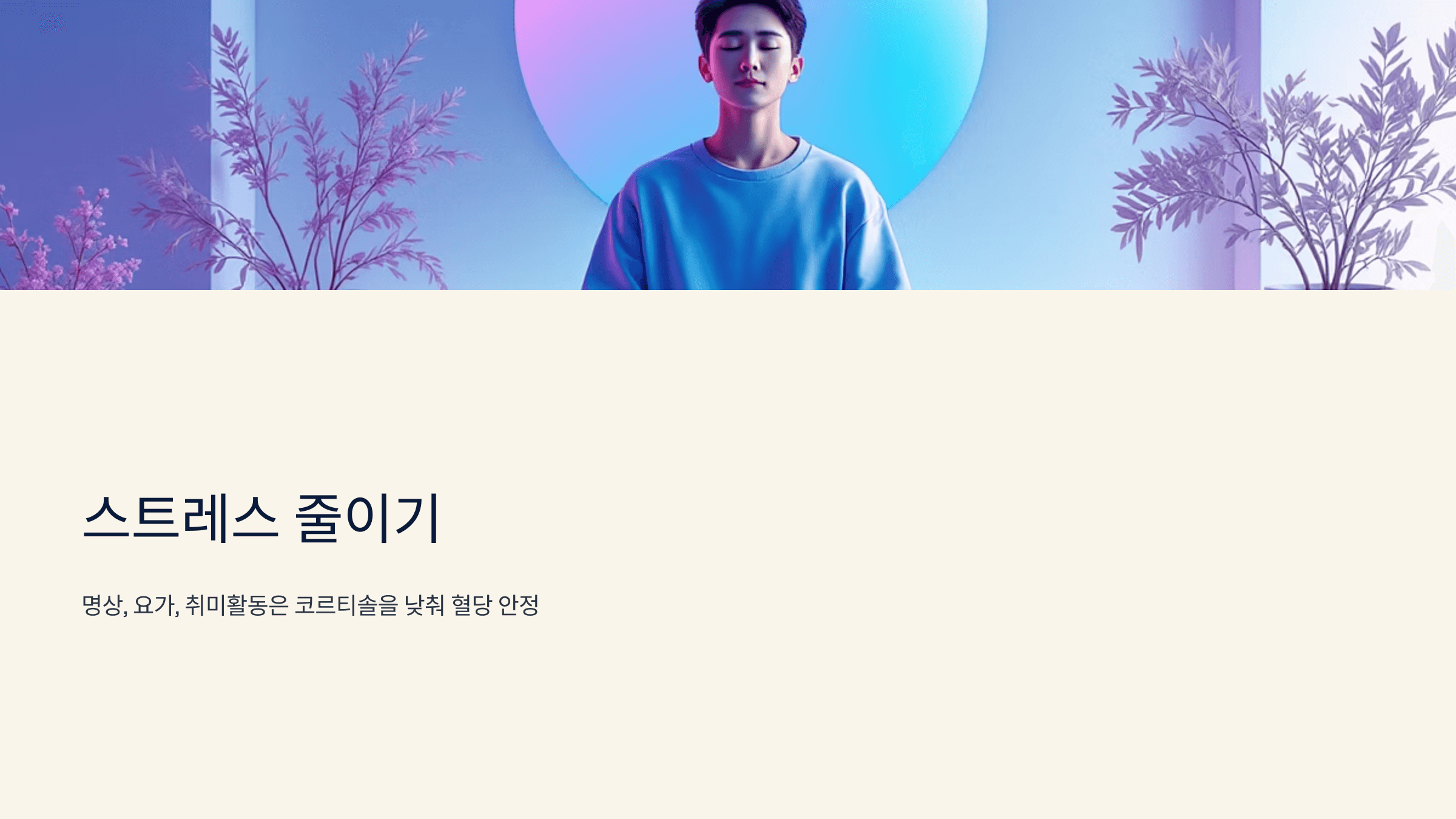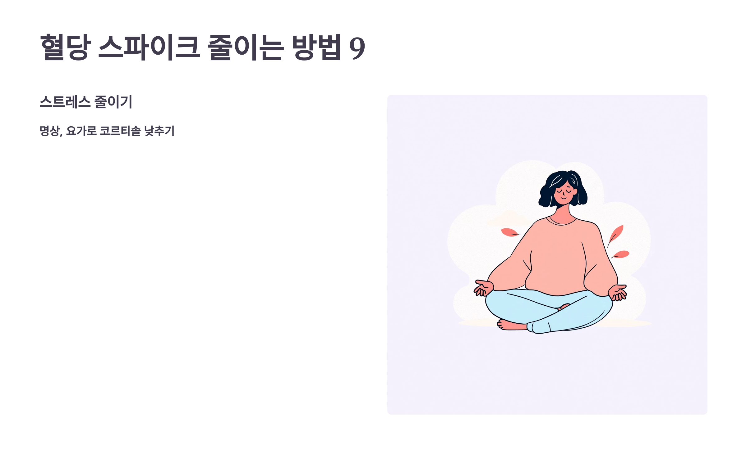 명상, 요가, 취미활동은 코르티솔을 낮춰 혈당 안정에 도움돼요.
