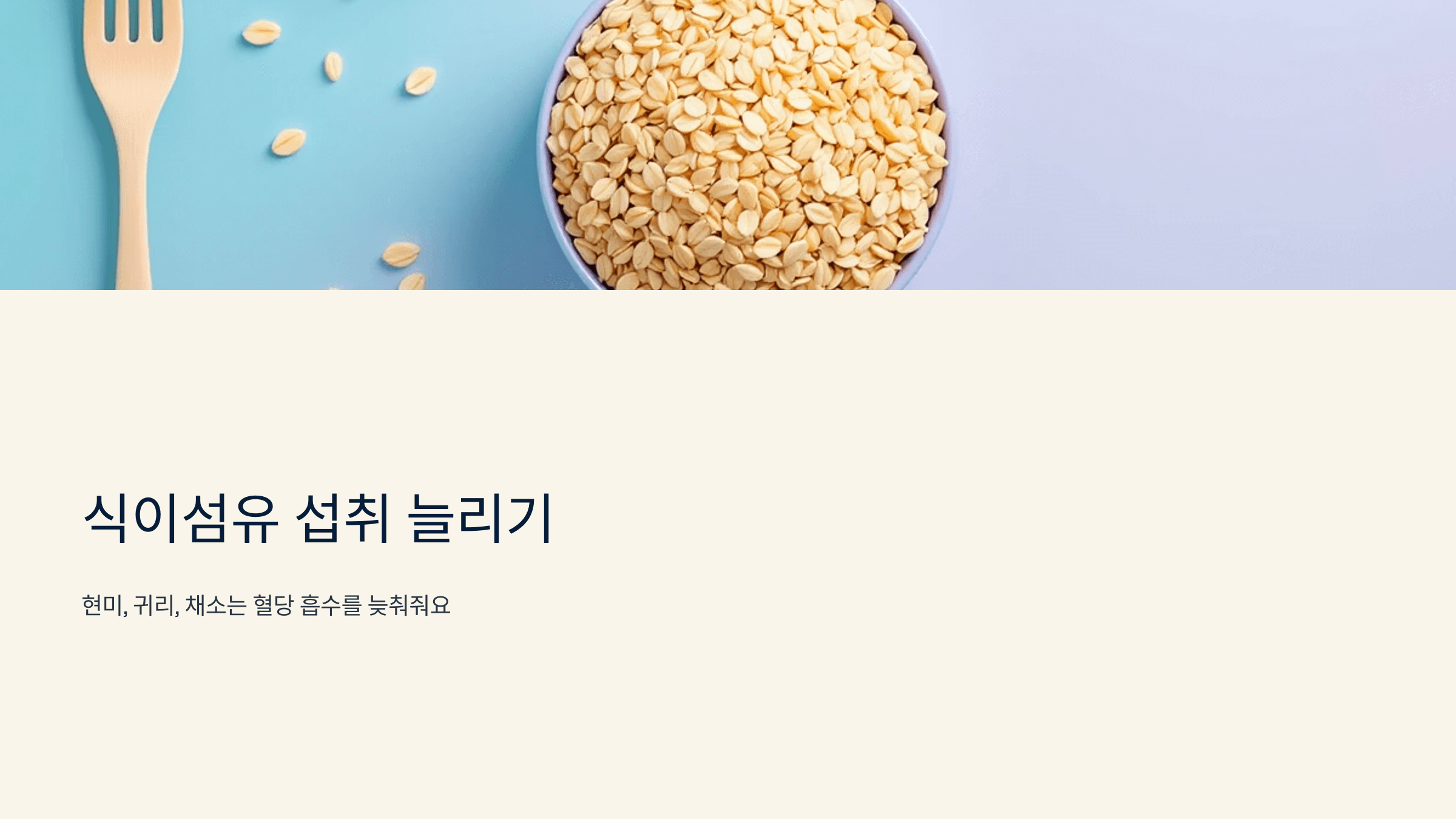 현미, 귀리, 채소, 나물 같은 식이섬유는 혈당 흡수를 늦춰줘요.