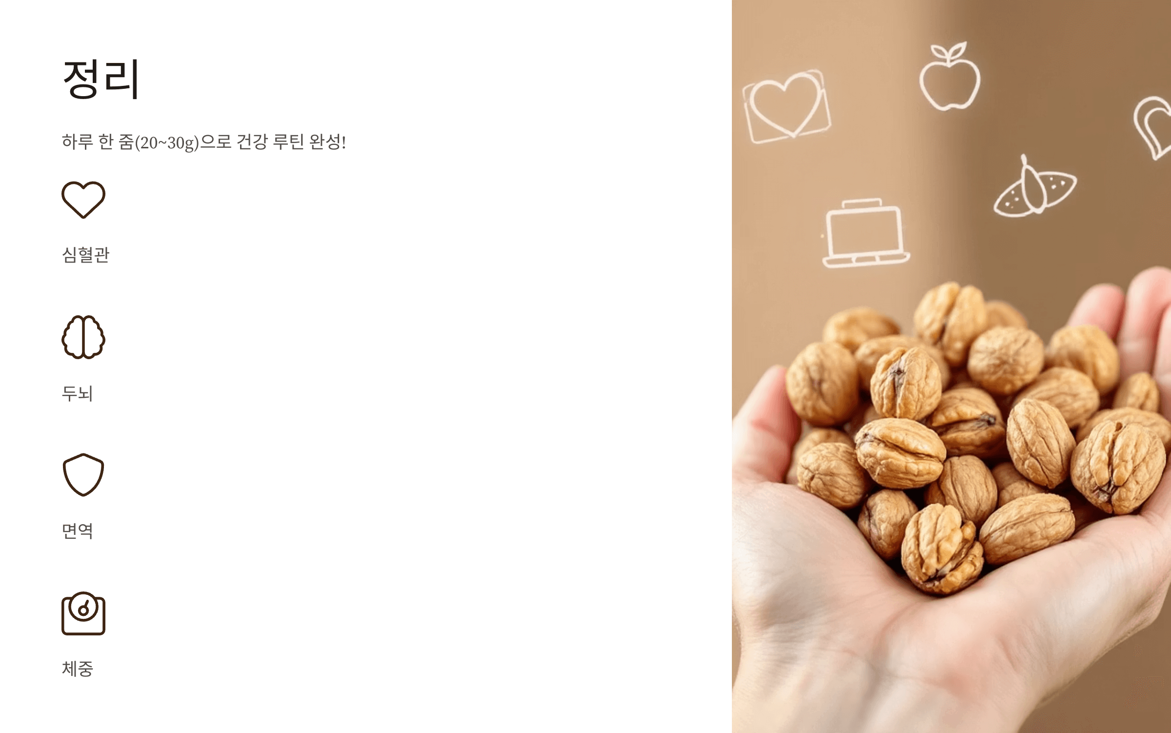 하루 한 줌, 약 20~30g의 호두로 건강 루틴을 완성해 보세요!