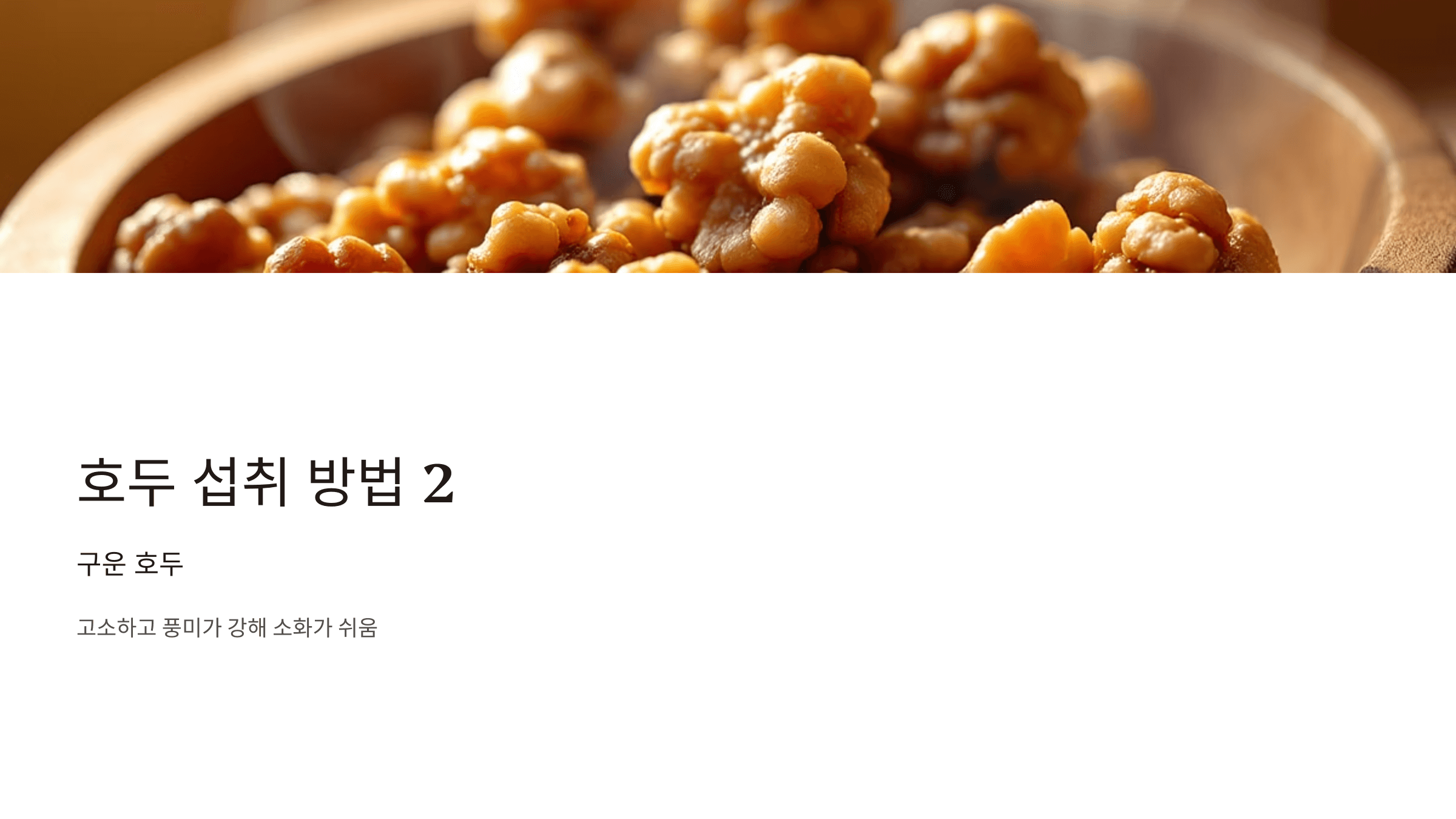 - 구운 호두: 고소하고 풍미가 강해 소화가 쉬움