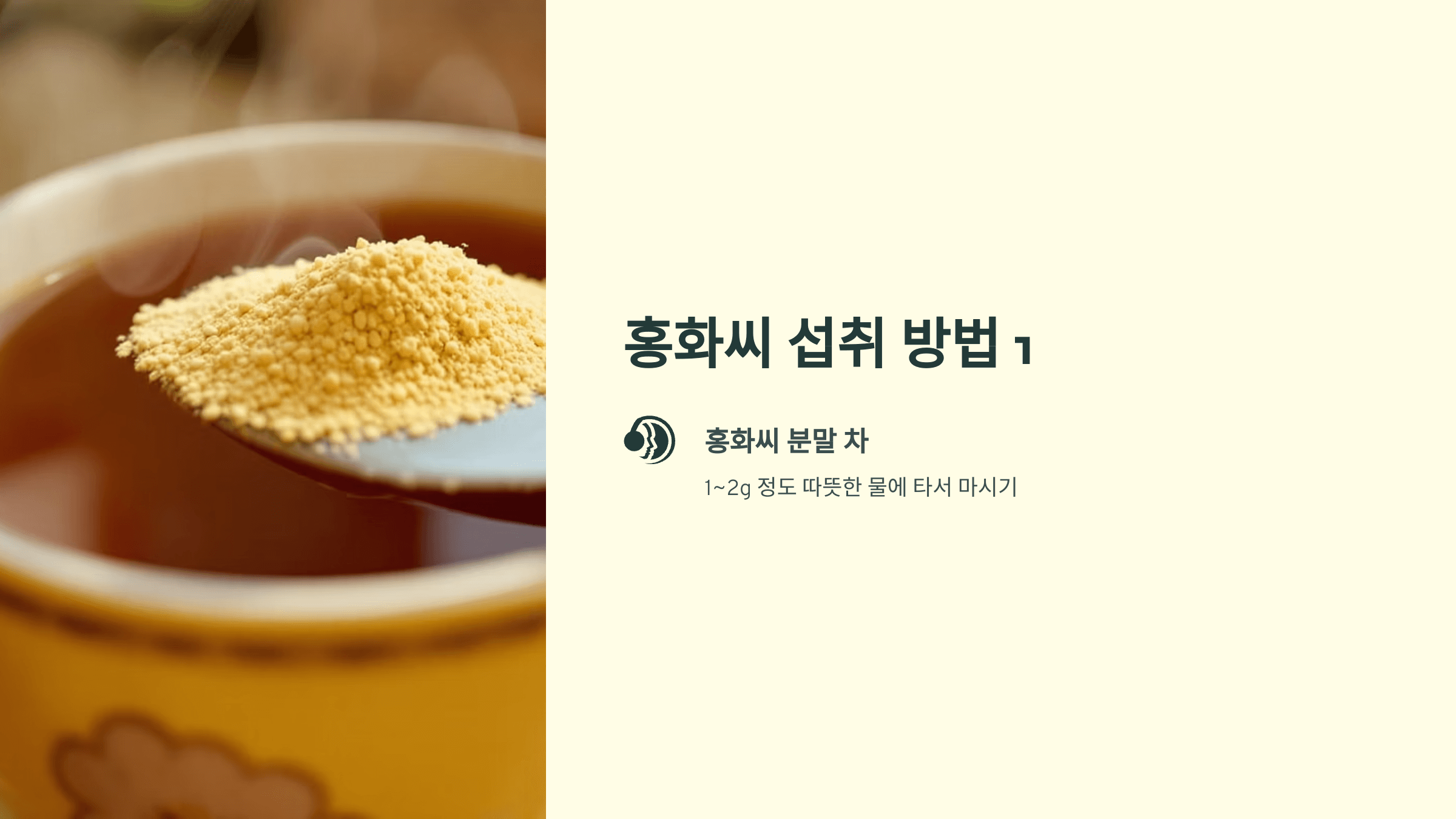- 홍화씨 분말 차: 1~2g 정도 따뜻한 물에 타서 마셔보세요