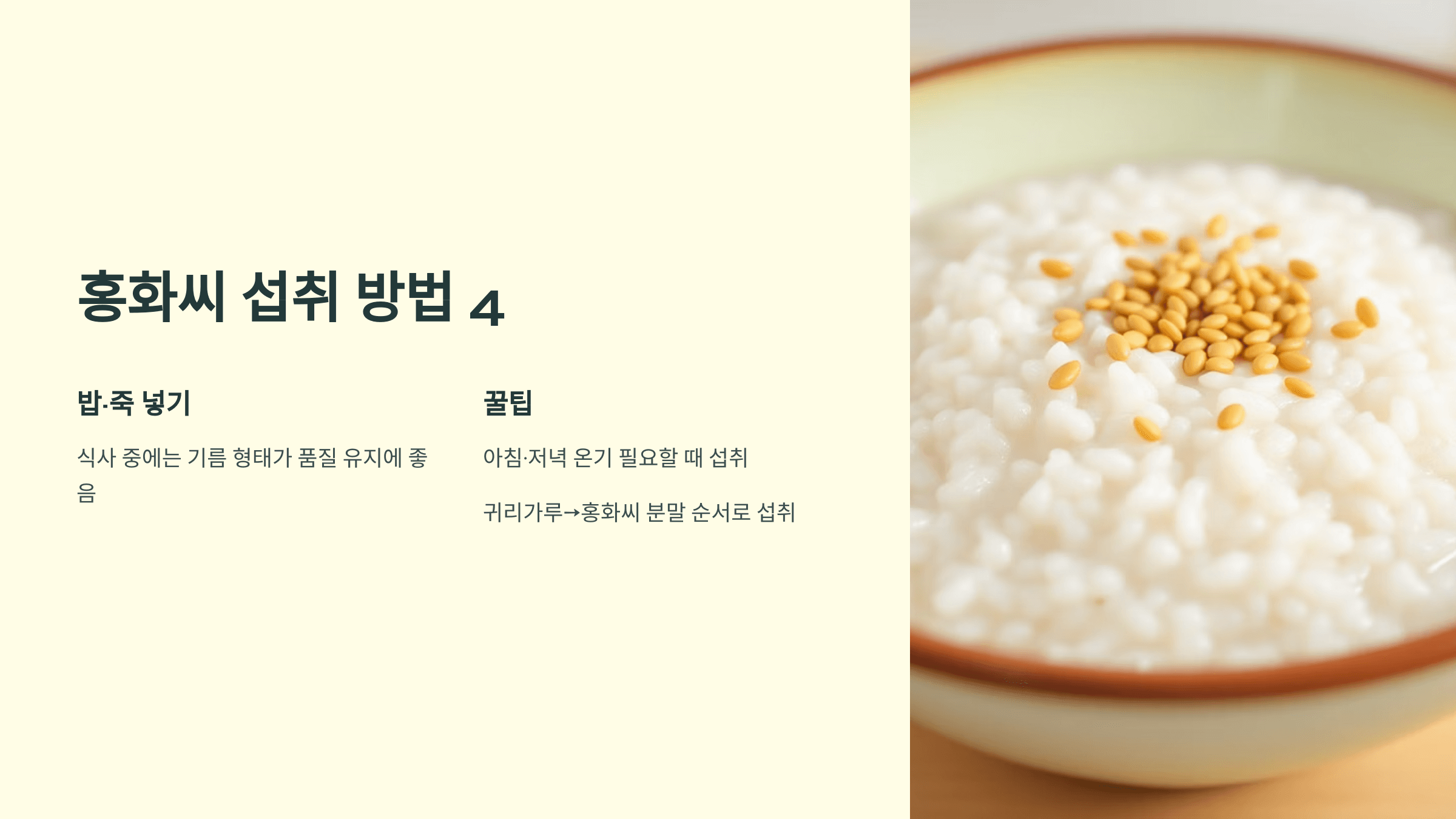 - 홍화씨 섭취 방법과 실용 팁